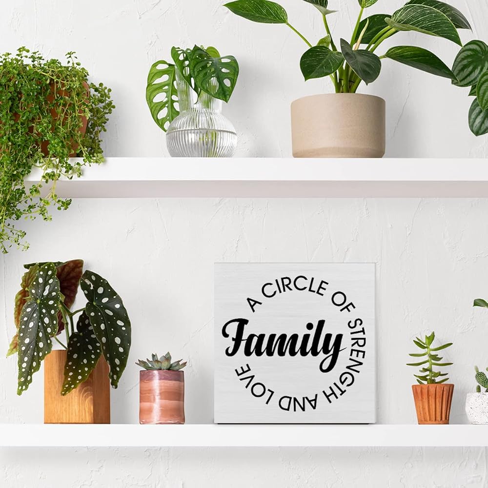 علامة صندوق خشبي مزخرف للعائلة، دائرة من القوة والحب، لوحة خشبية للديكور على الرف الريفي أو عرض الحائط لغرفة المعيشة المنزلية وغرفة النوم