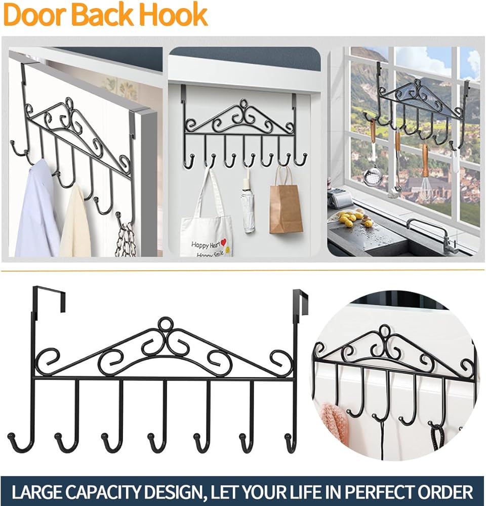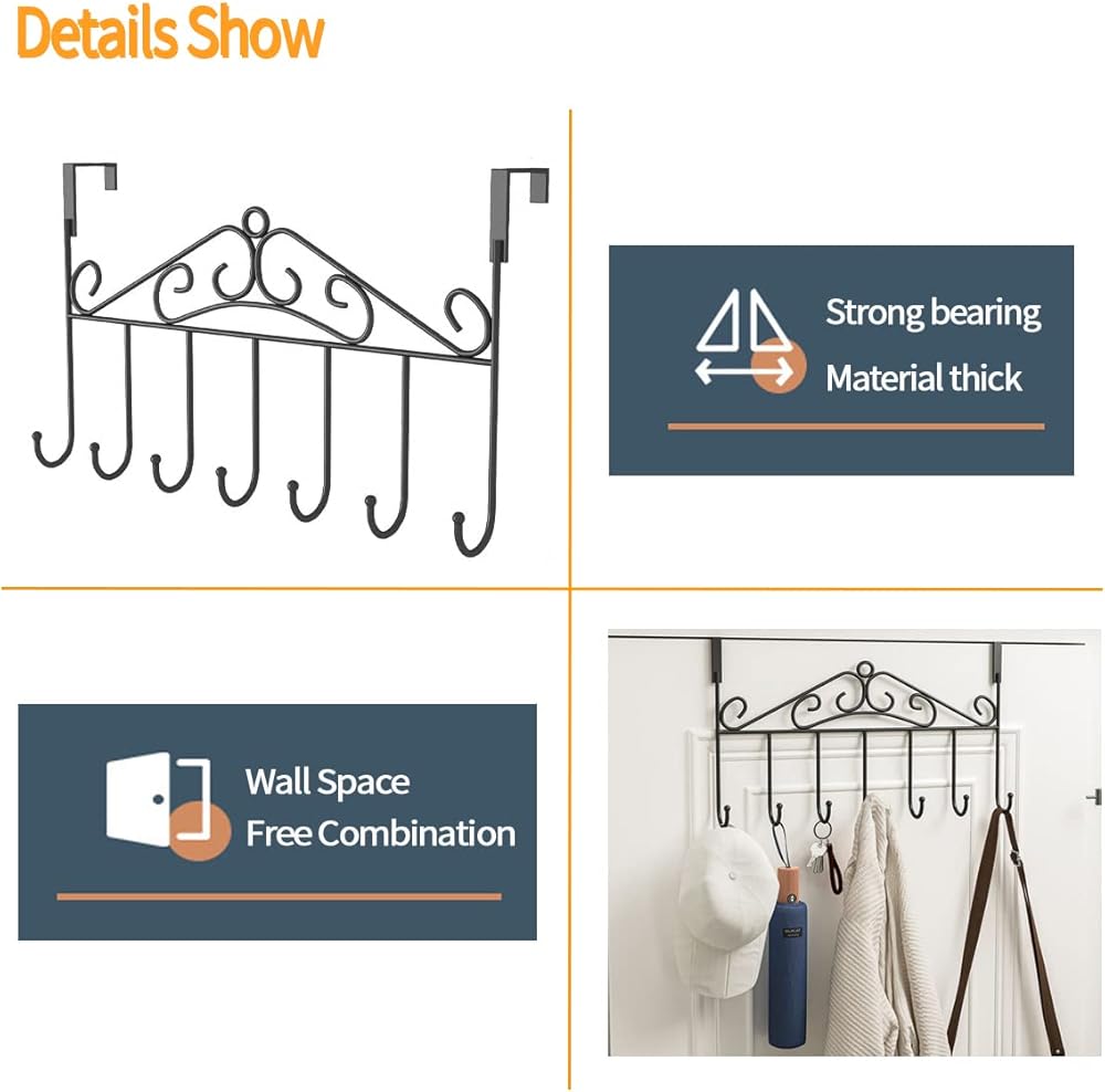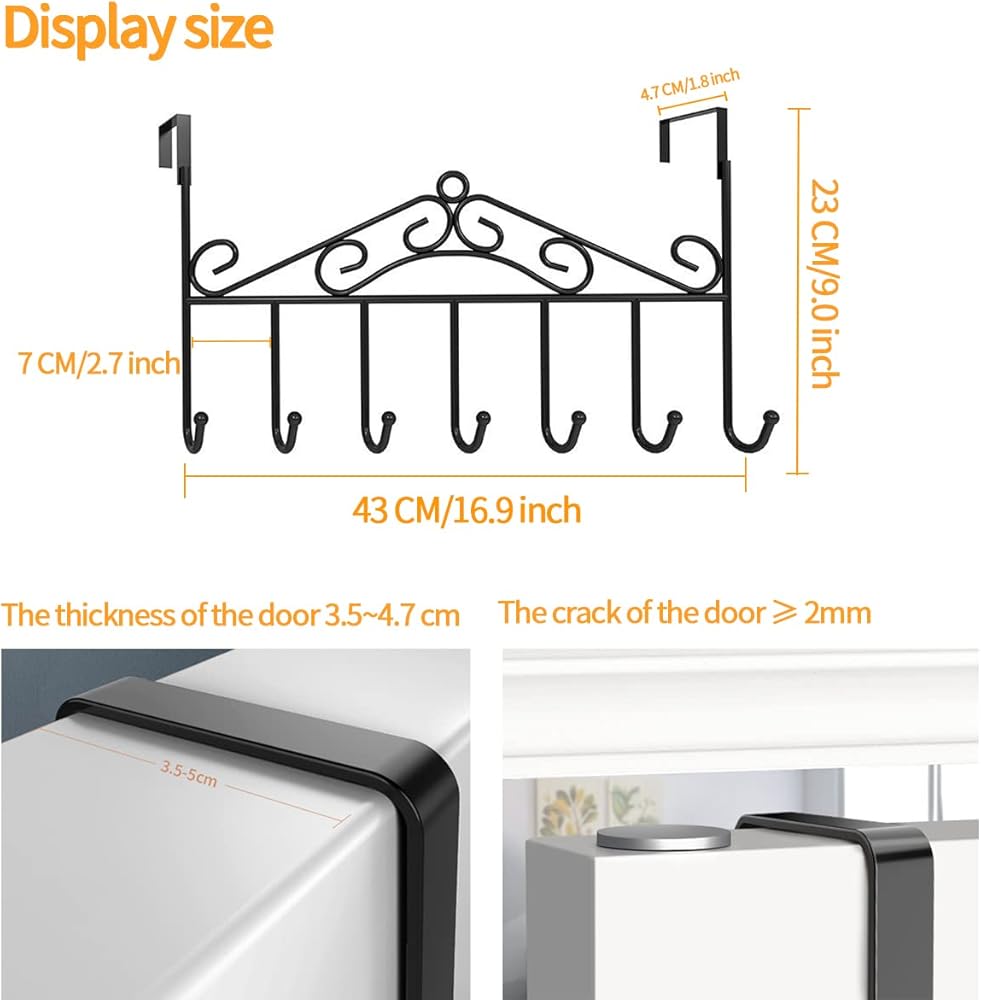 يحتوي خطاف المنشفة المعدني الموجود فوق الباب على سبعة خطافات، والتي يمكن تركيبها دون ثقب، ولن تلحق الضرر بالواجهة، ولها أداء جيد في تحمل الأحمال. يمكن استخدامه للملابس والملابس والمفاتيح والأرواب والقبعات والمناشف والمزيد