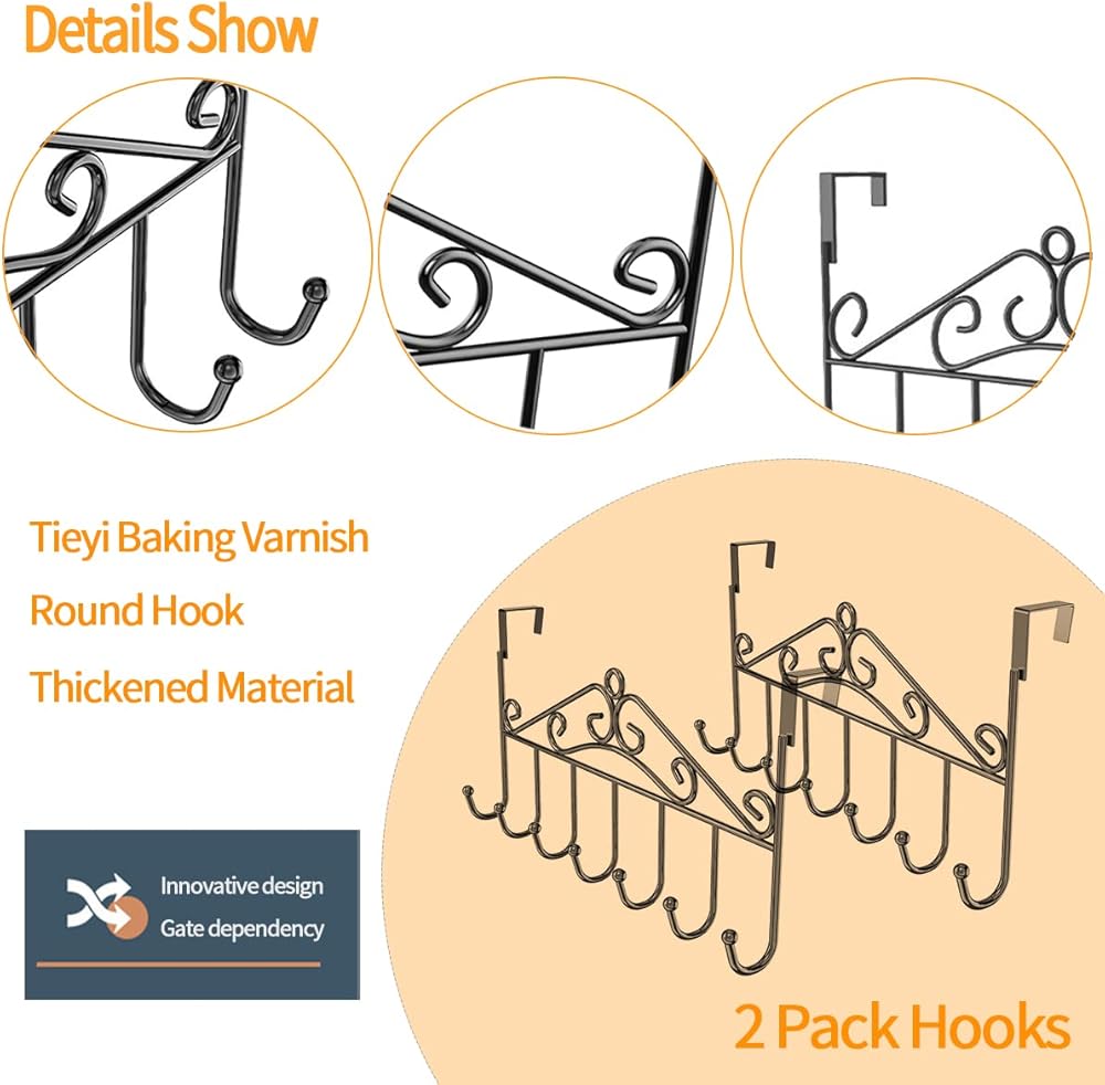 عبوتين من الخطافات فوق الباب، الأبعاد: 16.8 × 9 × 1.8 بوصة، وهي مناسبة للأبواب الداخلية القياسية للمطابخ أو غرف النوم أو الخزانات