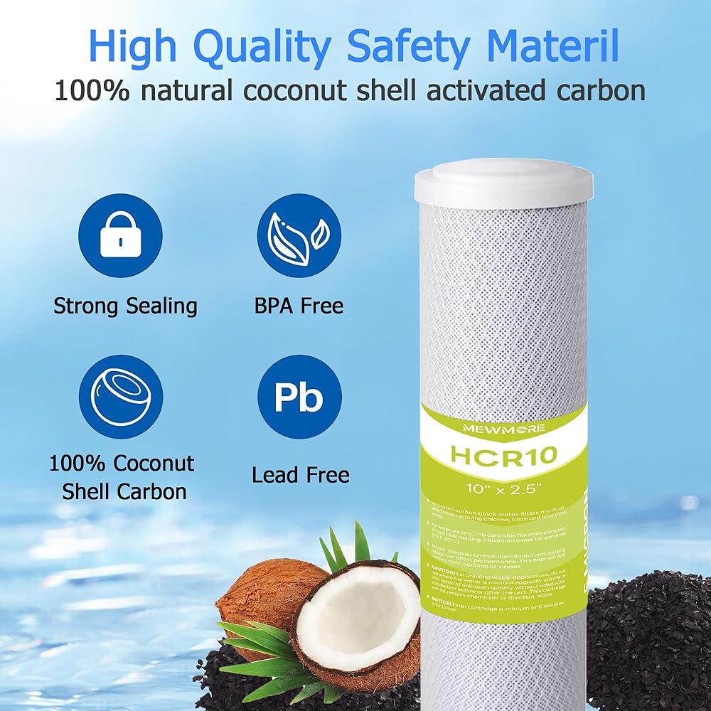• Activated Carbon Block Filters: Made with the high-quality materials. Reduce chlorine, VOC, bad tastes, odors, cloudiness, organic chemicals and industrial solvents. Delivering cleaner water, providing a wonderful drinking experience for your family.