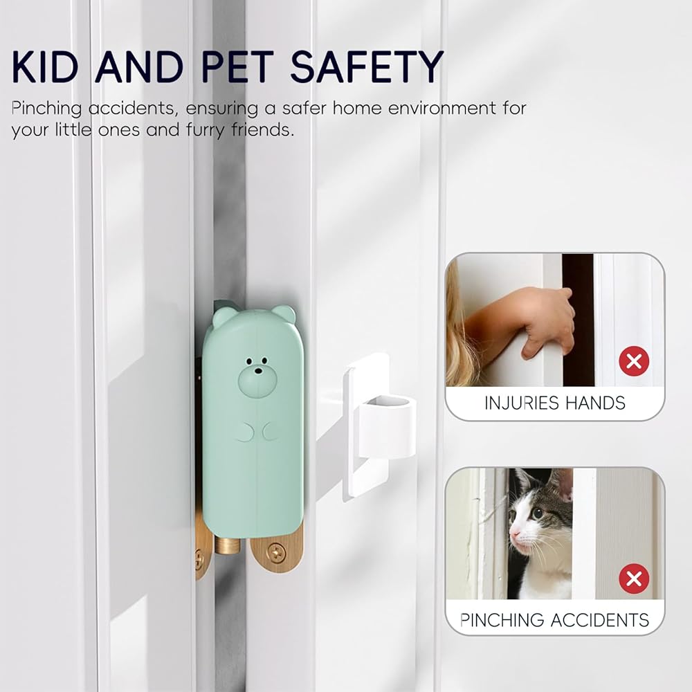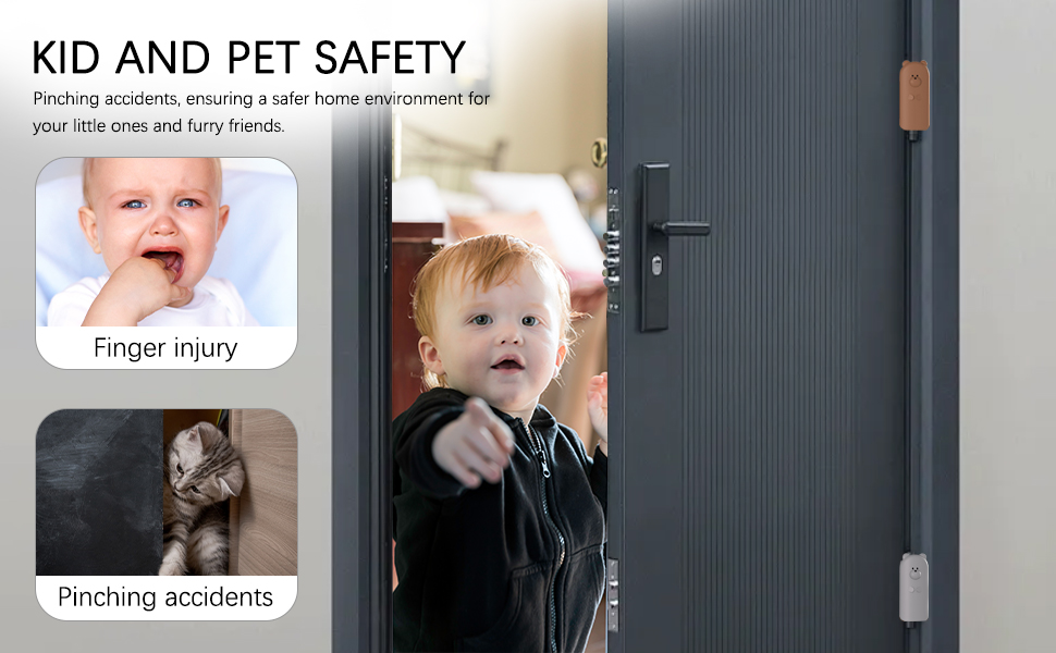 سلامة الأطفال والحيوانات الأليفة: بمثابة ملحق مثالي لحماية الأطفال، كما أنه يحمي حيواناتك الأليفة مثل القطط والكلاب من حوادث قرص الباب، مما يضمن بيئة منزلية أكثر أمانًا لأطفالك الصغار وأصدقائك ذوي الفراء.