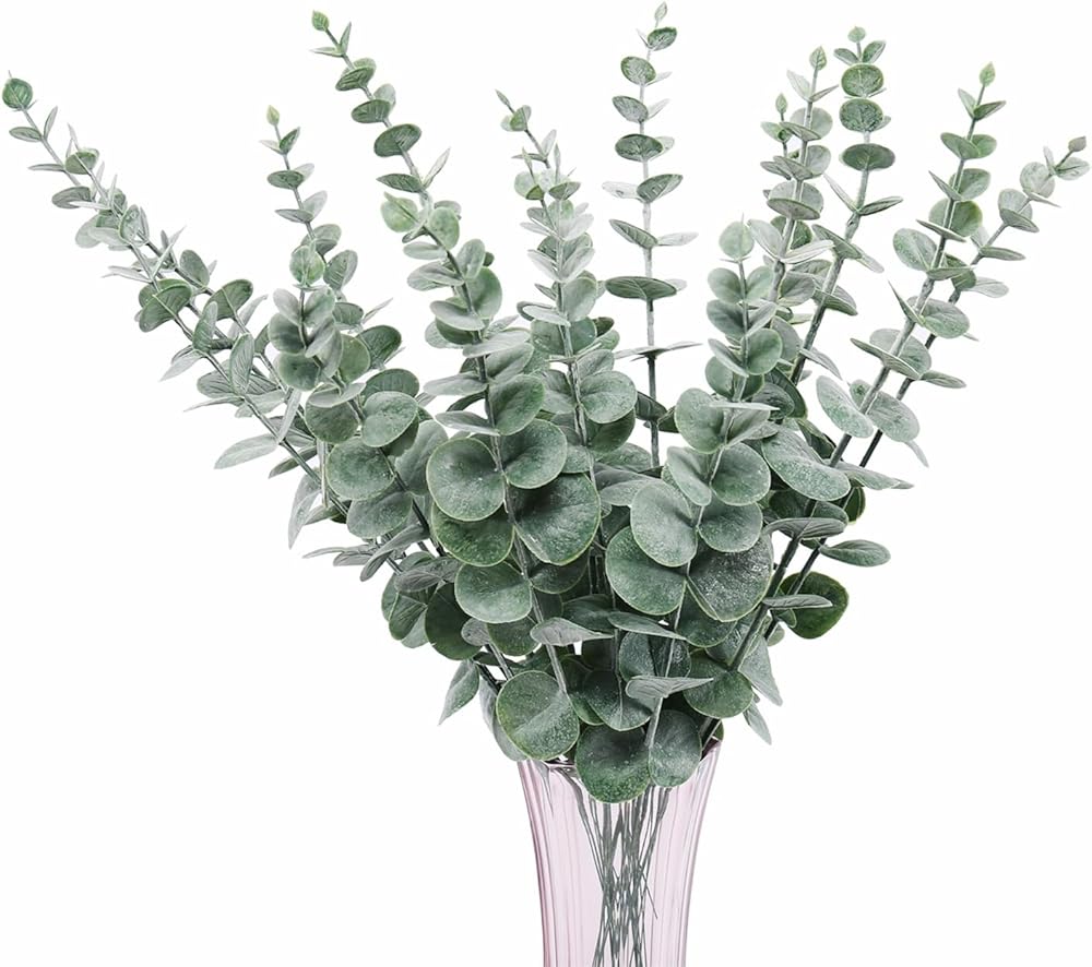 【Package Includes】Set includes 8pcs gray green artificial eucalyptus stems.