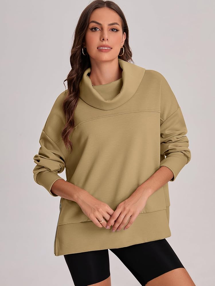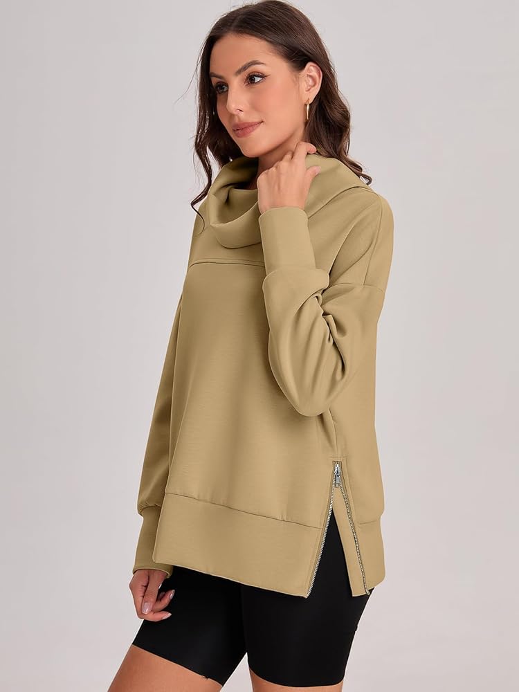 المزايا - سترات رياضية بقلنسوة للسيدات، سترات بياقة مدورة، مقاس كبير، ياقة كتف منسدلة، لون موحد، ملابس أزياء الخريف والشتاء، تصميم بسحاب جانبي. هذه السترة الأنيقة هي سترة متعددة الاستخدامات للغاية!