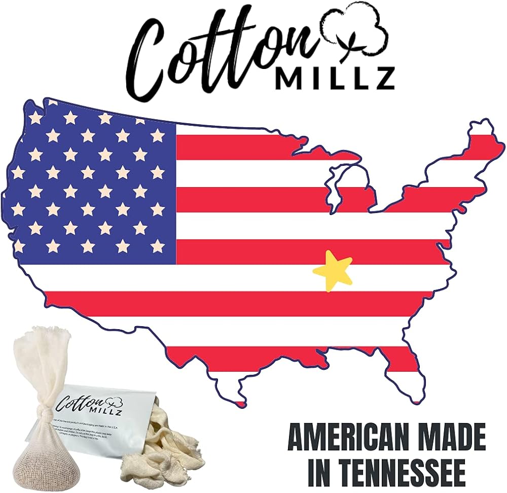 • Made in the USA from a cotton-poly blend. Reusable or disposable. Unlike plastic mesh bags, Cotton Millz bags are naturally BPA-free, heat-safe, and food safe. These bags make meal prep and clean up super easy.