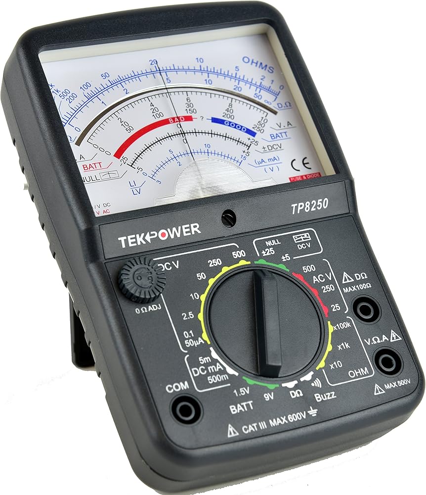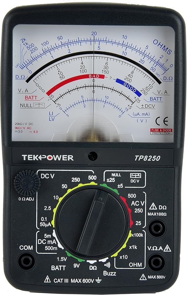 The newly introduced Tekpower Null Multimeter TP8250 is fully featured and can be used to measure AC/DC voltage and DC current, resistance, as well as continuity buzzer. It also has a built-in 1.5V and 9V battery tester with a 100mA/10mA load respectively. One thing unique about this meter is it comes with two Null Measurement position, so you can read variable DCV change with the movement of the needle. Very direct to your eyes.