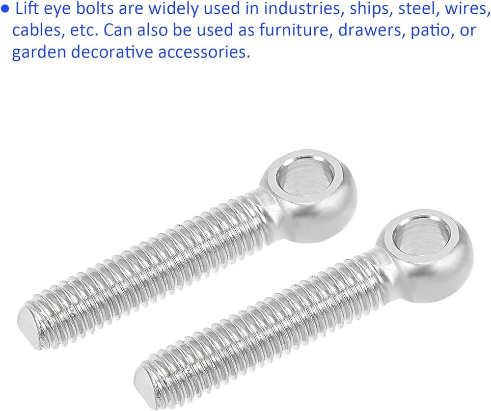 Lift eye bolts are widely used in industries, ships, steel, wires, cables, etc. Can also be used as furniture, drawers, patio, or garden decorative accessories.