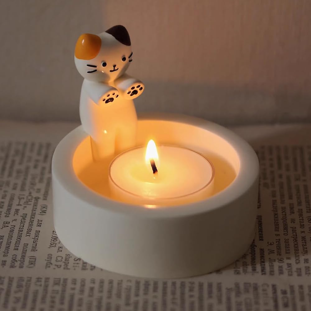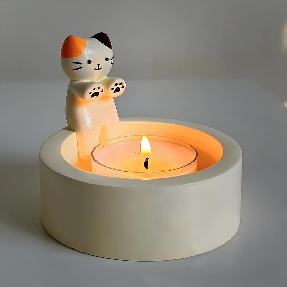 【CARTOON KITTEN】The candle holder features a unique design of a kitten extending its paws to keep warm, creating a charming and cozy atmosphere for your home. There are 2 types for you to choose, white cat candle holder with white ears and white cat candle holder with colored ears.