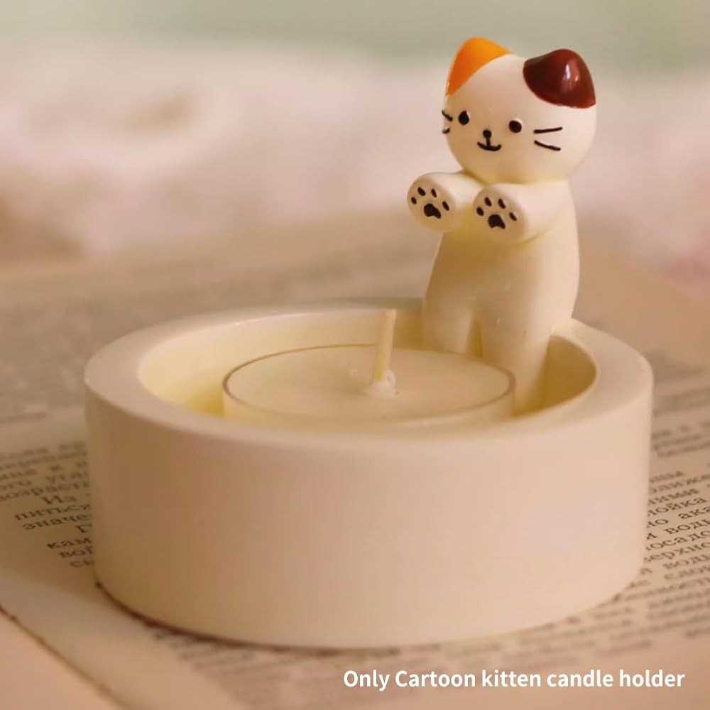 【STURDY MATERIAL】Cartoon kitten candle holder is made of resin material, which is strong and durable, resistant to falling and not easy to break. It has a good texture, polished and colored by hand, is a unique work of art.