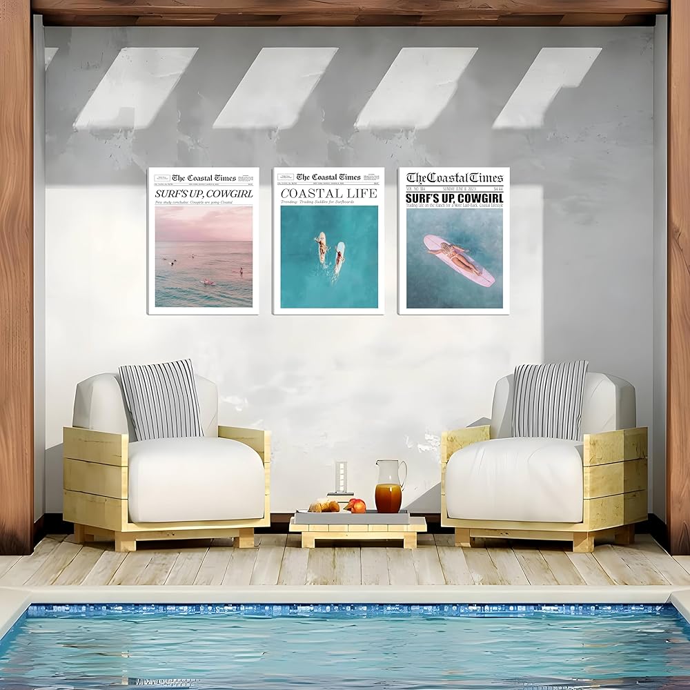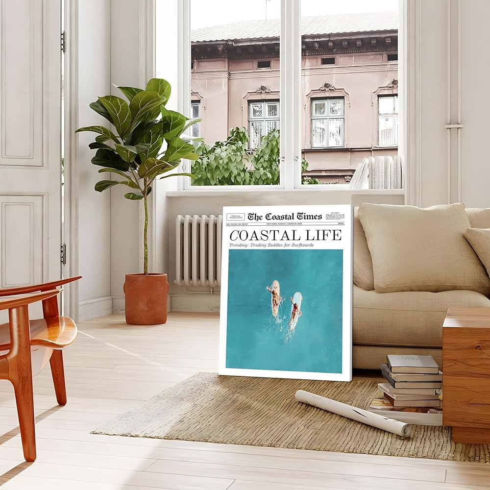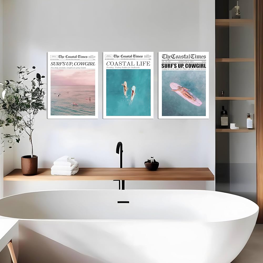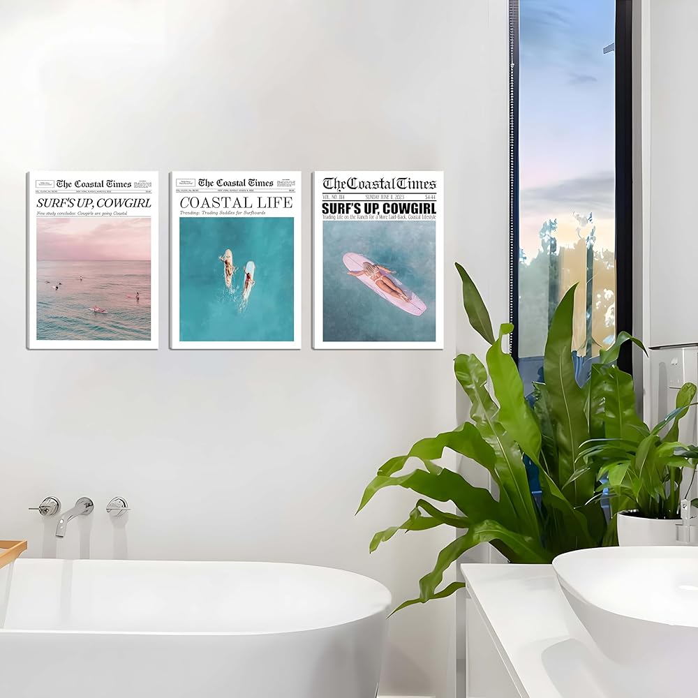 • 【ديكور جداري أنيق وفريد ​​من نوعه】تتضمن مجموعة الأعمال الفنية الجدارية الساحلية لدينا مشاهد شاطئ صيفية ساحرة، وفتيات راكبات الأمواج، ورسومات راعية البقر العتيقة في الصحف. تضفي هذه التصميمات لمسة جمالية أنيقة وفريدة من نوعها على مساحتك الخاصة،