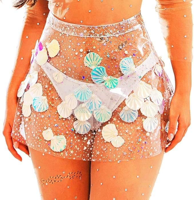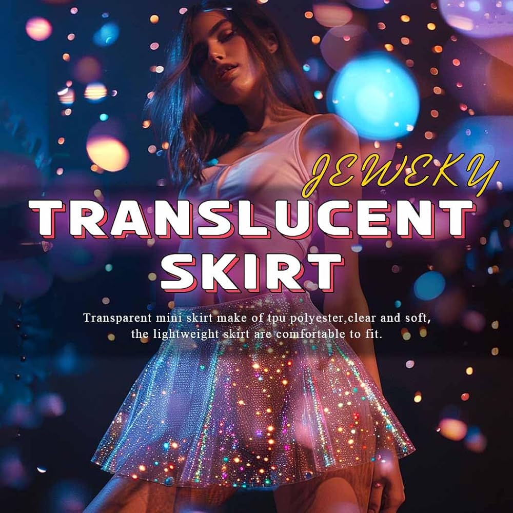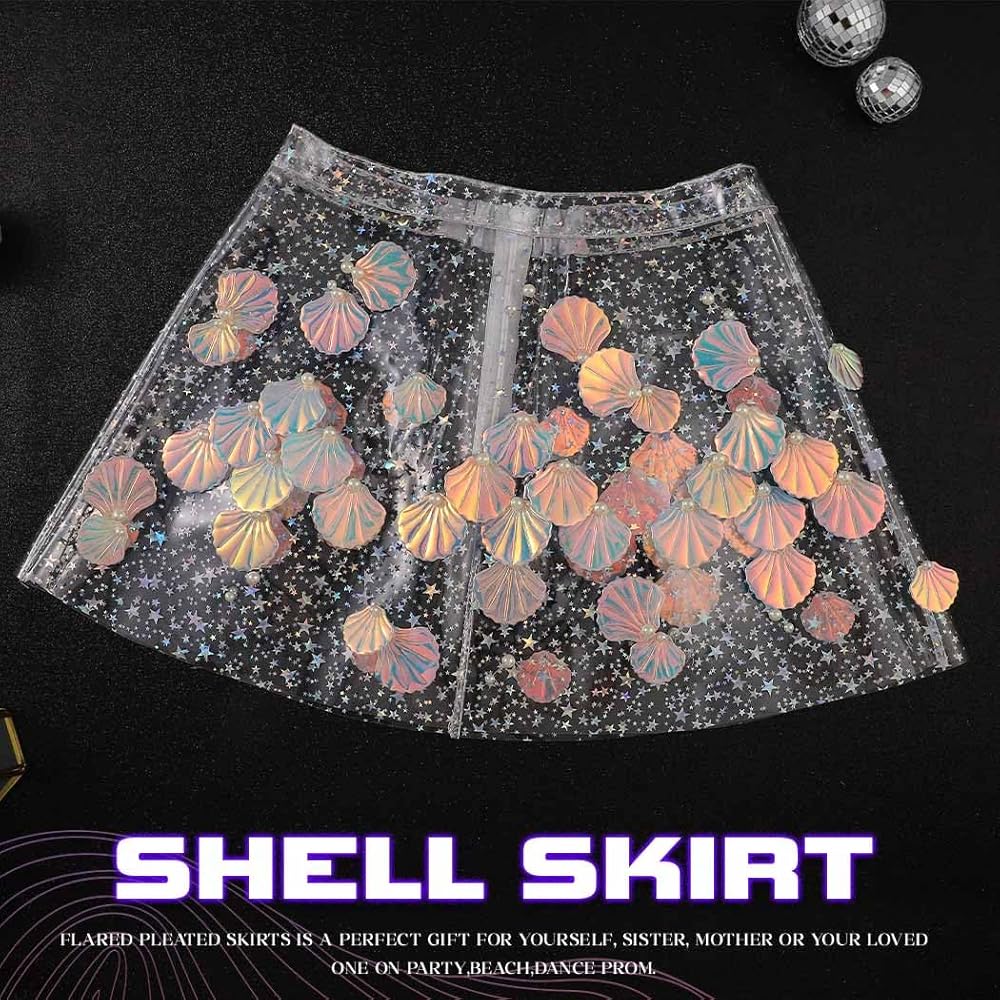 JEWEKY تنورة رقص صغيرة شفافة ذات ثنيات لامعة وتنورة واسعة للحفلات للنساء