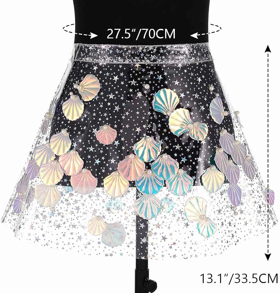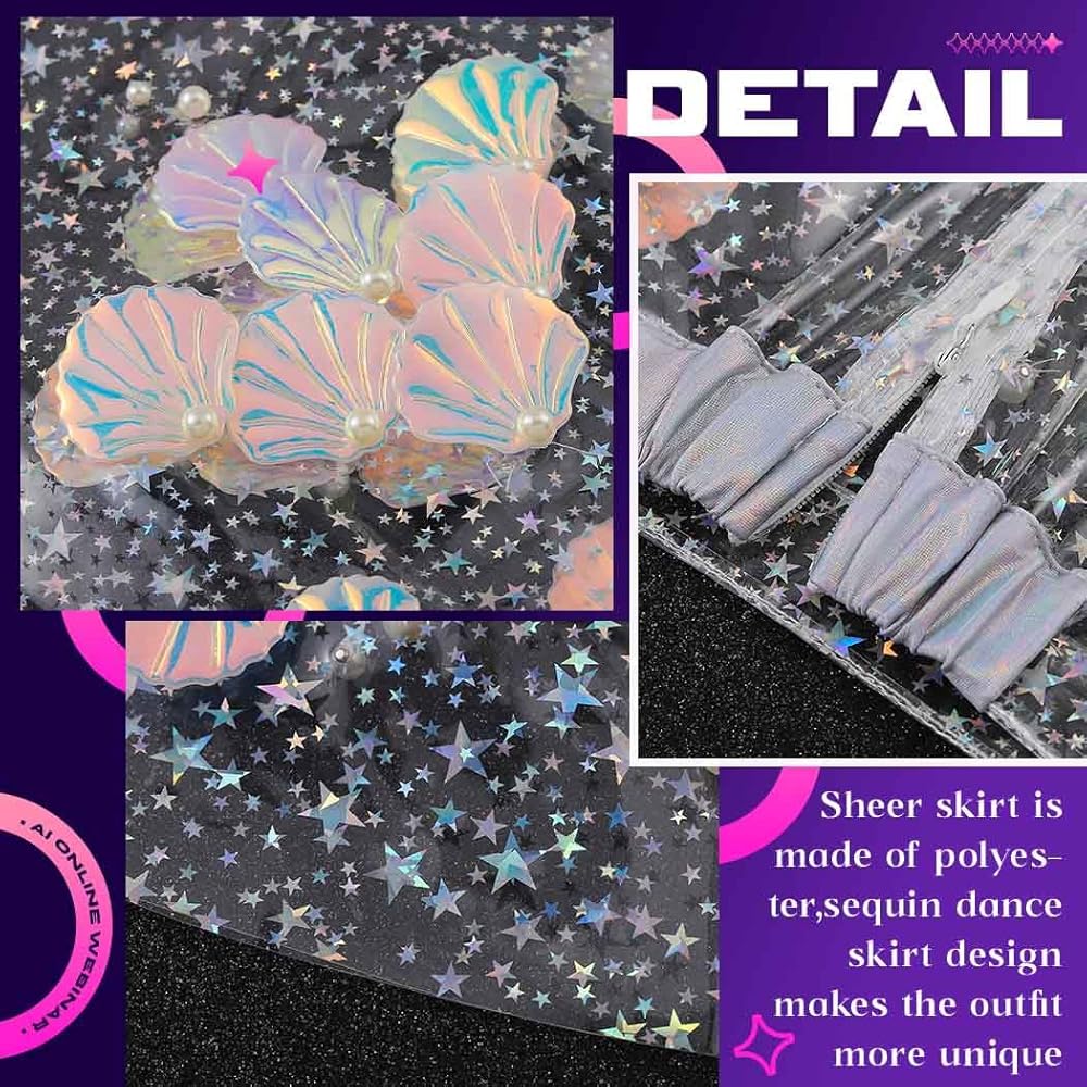 - تنورة رقص قصيرة شفافة شفافة ذات ثنيات لامعة وتنورة واسعة للحفلات للنساء