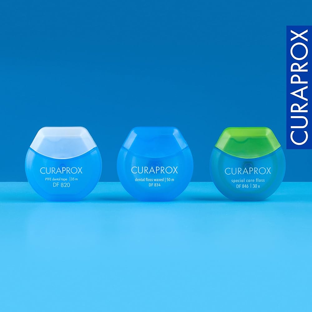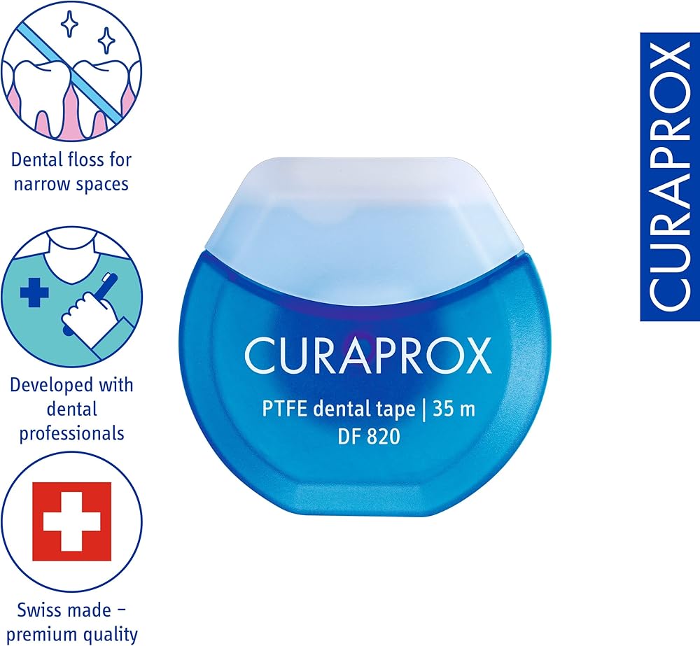 Curaprox Dental Tape: Our dental tape is made with tear-resistant PTFE tape for smooth, easy flossing, while the extra length allows you to reach even the tightest gaps, promoting comprehensive oral hygiene