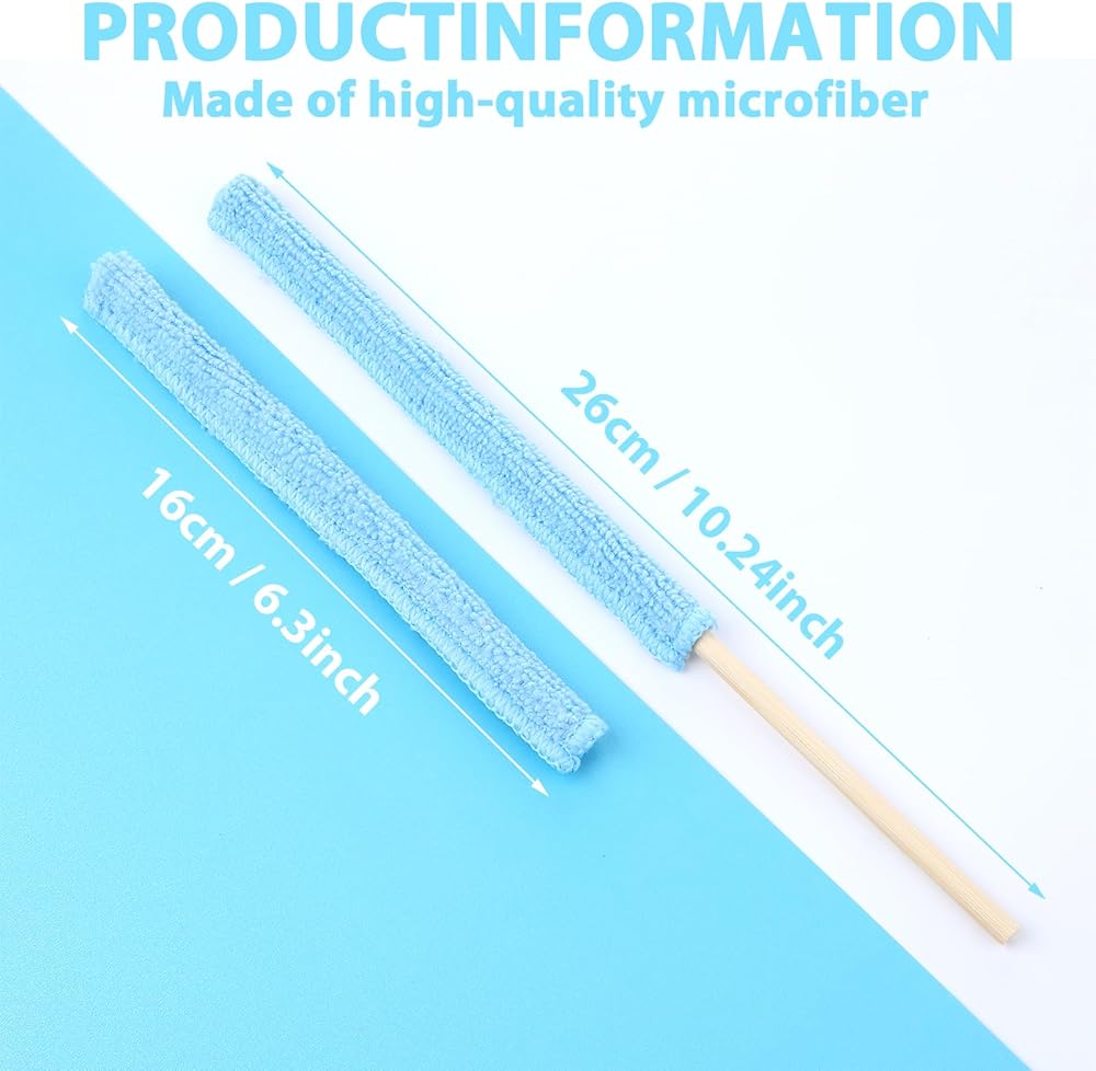 Precise Size Design: Each fan cleaner brush stick is 10.3 inches in length,with a microfiber cloth covering a portion of 6.3 inches,making the slim design easy to clean hard-to-reach crevices.