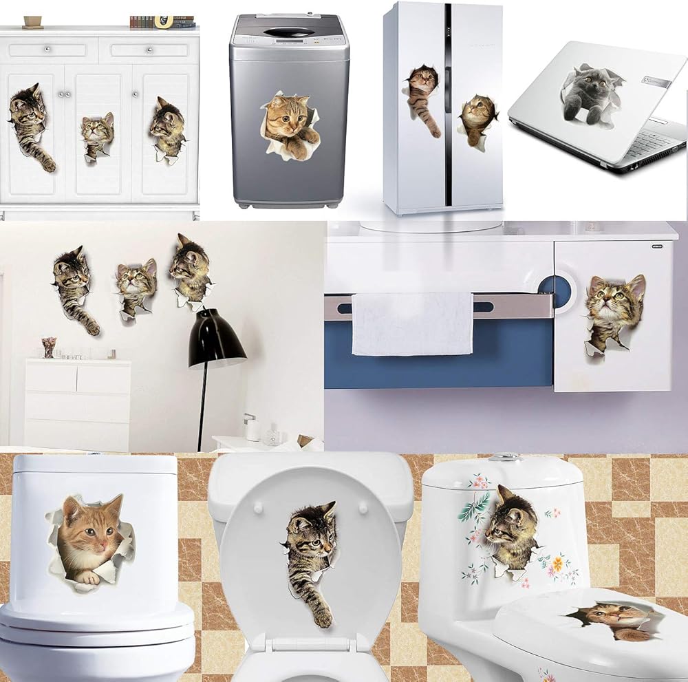 ملصق حائط على شكل قطة لطيفة على شكل حيوانات لتزيين غرفة المعيشة وغرفة النوم، ملصقات حائط على شكل حيوانات للحمام/المرحاض/الثلاجة/السيارة/غرفة الحضانة/PVC/المطبخ، ملصقات جدارية ثلاثية الأبعاد