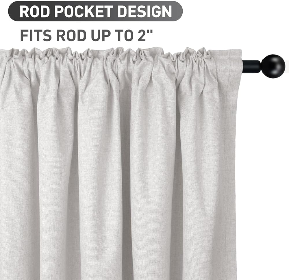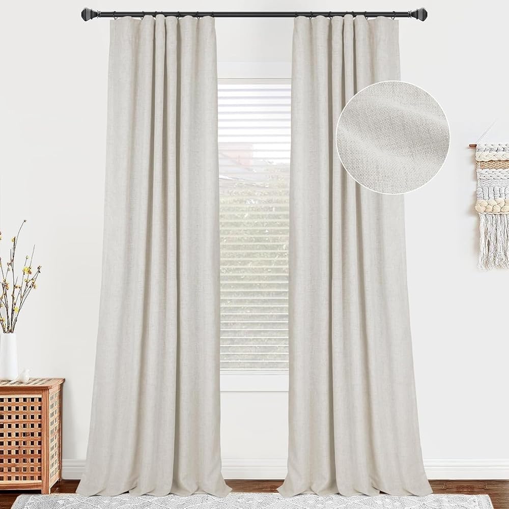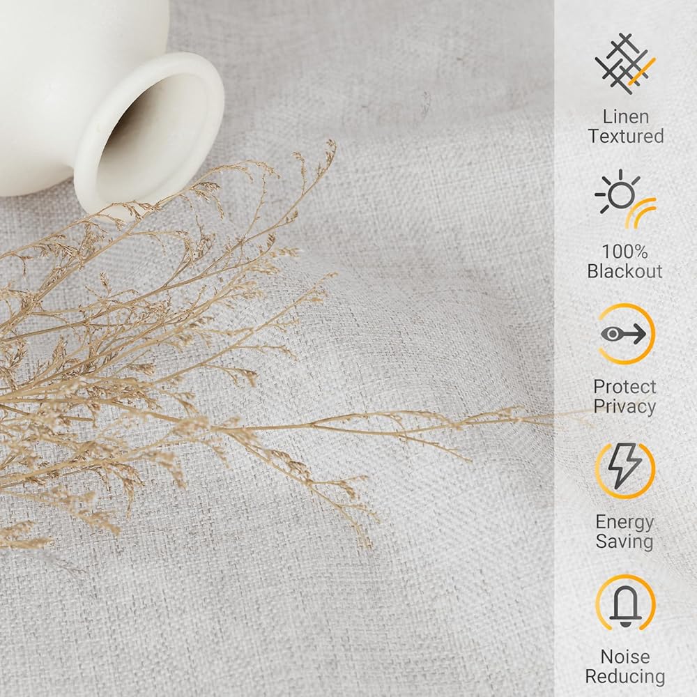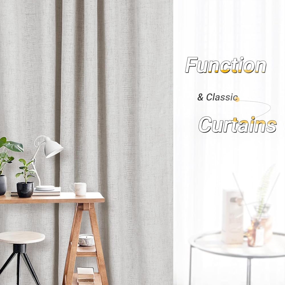 LINEN BLACKOUT CURTAINS: Beige curtains provide 100% blackout, thermal insulated, noise reducing. Room darkening curtains protect your furniture and floor exposed to the sun.
