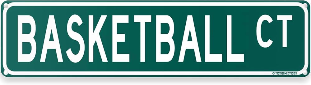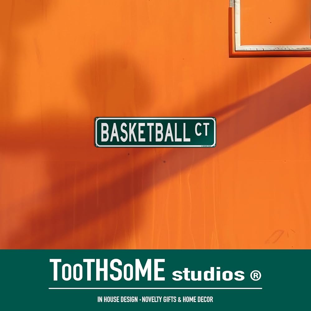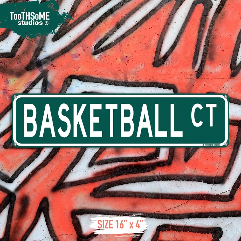 لافتة شارع مضحكة لملعب كرة السلة مقاس 40.64 سم × 10.16 سم، بار رياضي لغرفة الألعاب، ديكور كهف المنزل للرجال (BasketballStreet)