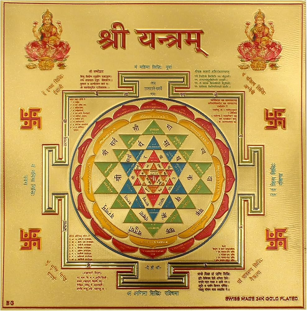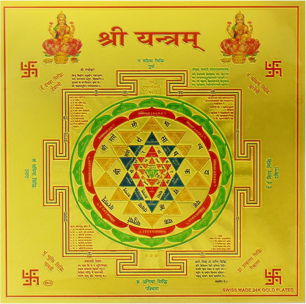 Yogic Mantra Sri Yantra Kavach | Unframed 6x6 Inch | 180 GSM Gold Foil Paper | Embossed Printing | Shri Yantra Chakra Meditation Wealth Yantram | Diwali Art Gift | Home Office Temple Wall Decor Poster