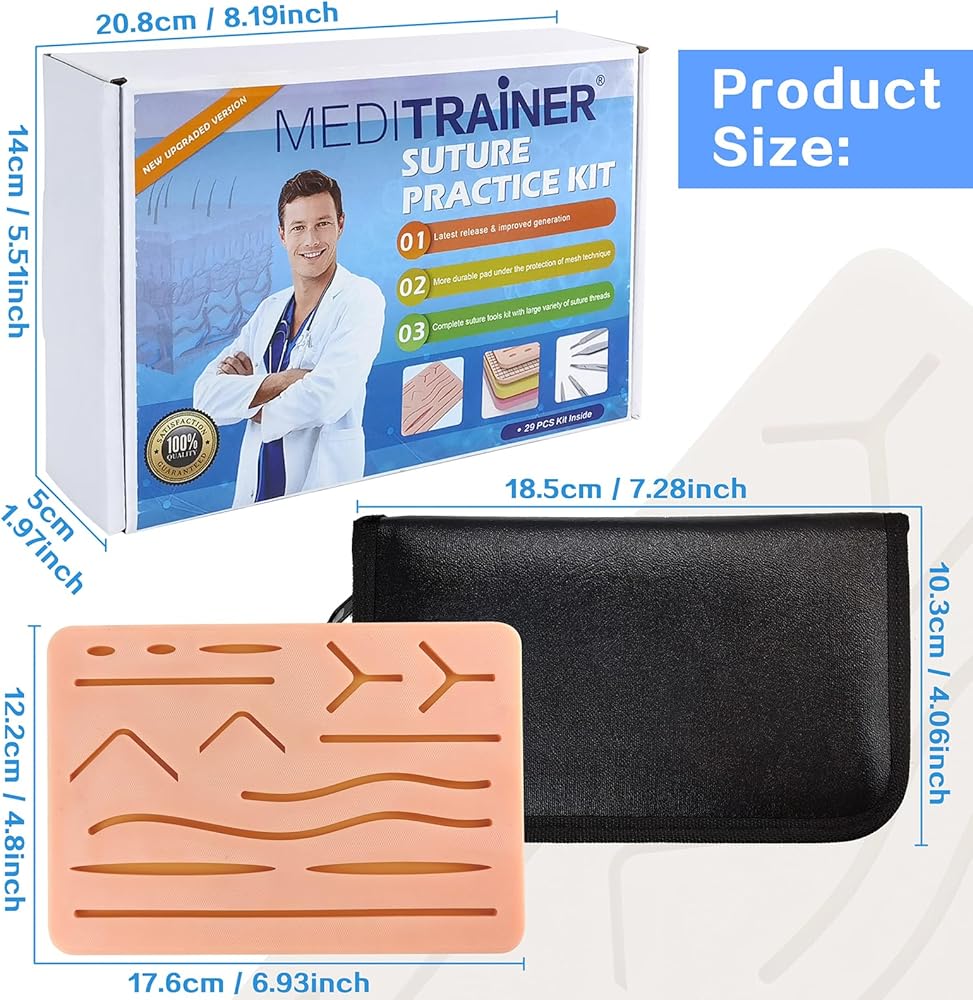 EVOTECH Suture Practice Kit for Medical Learning Study, Latest Release & Improved Generation 29 Pcs Complete Suture Tools Kit With Large Variety Of Suture Threads Needle Cut Wounds Suture Pad Ideal for suture teaching & practice especially suitable for beginners in suture training
