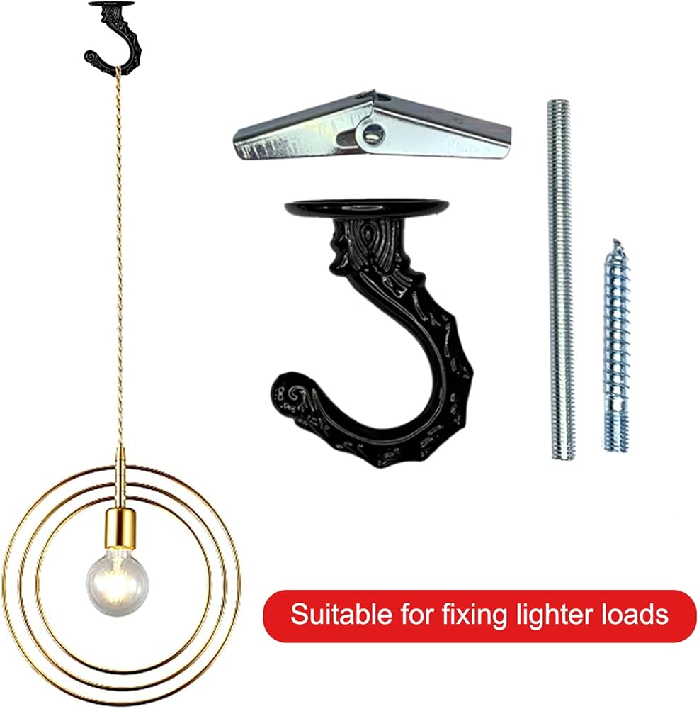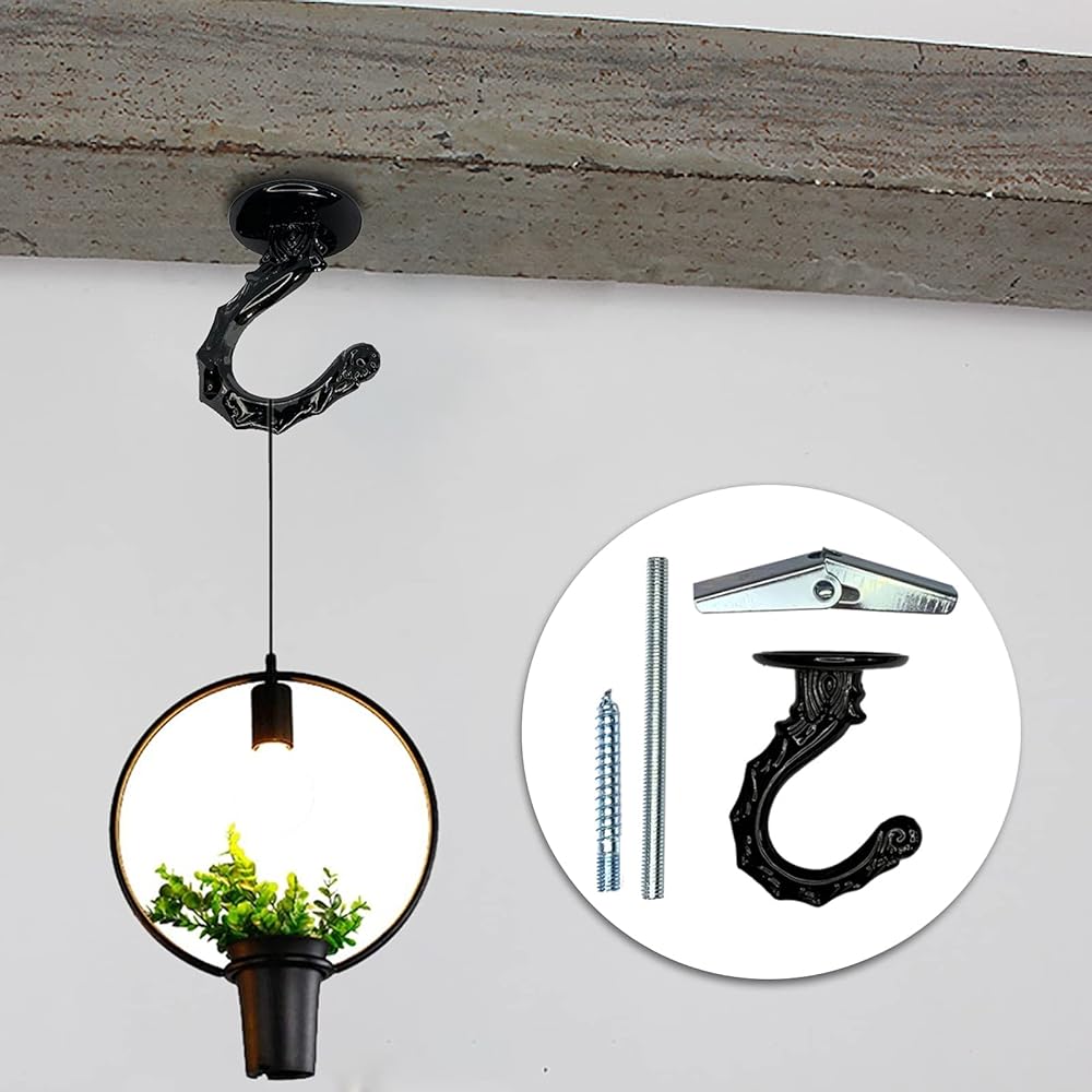 Plant Hanger Hook Swag Hooks for Ceiling Cavity Wall Fixing Ceiling Hook - Heavy Duty Swag Hook with Steel Screws Bolts and Toggle Wings for Hanging Plants Ceiling Installation Cavity Wall Fixing Black