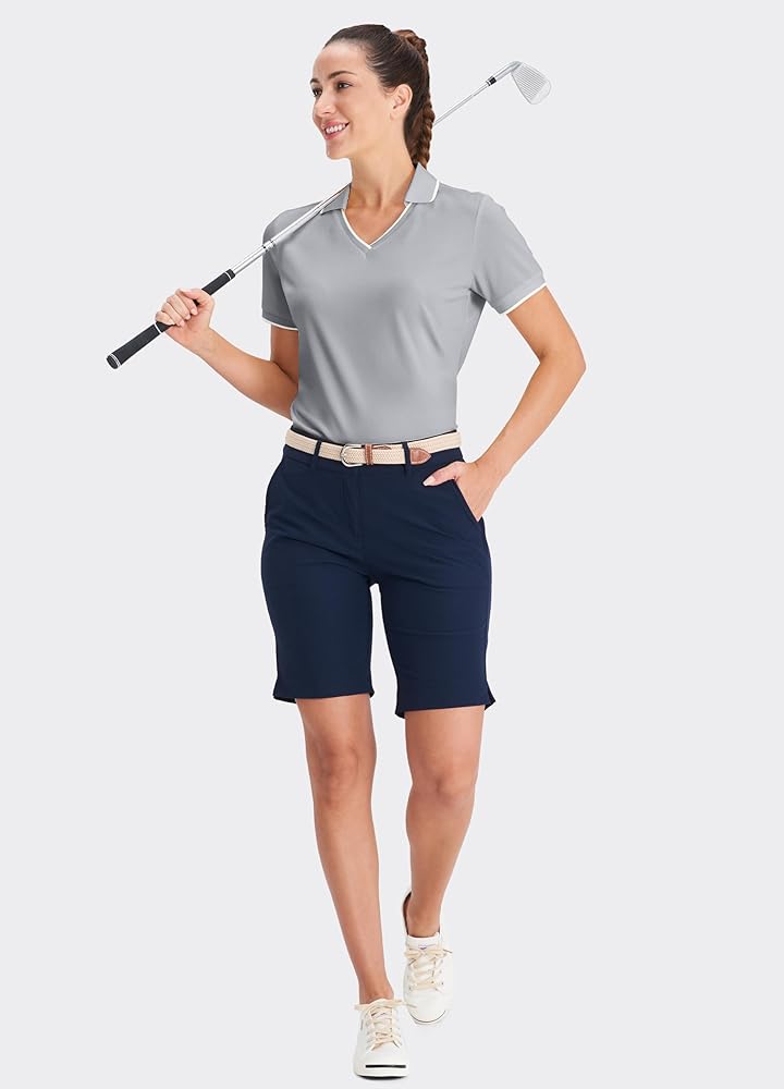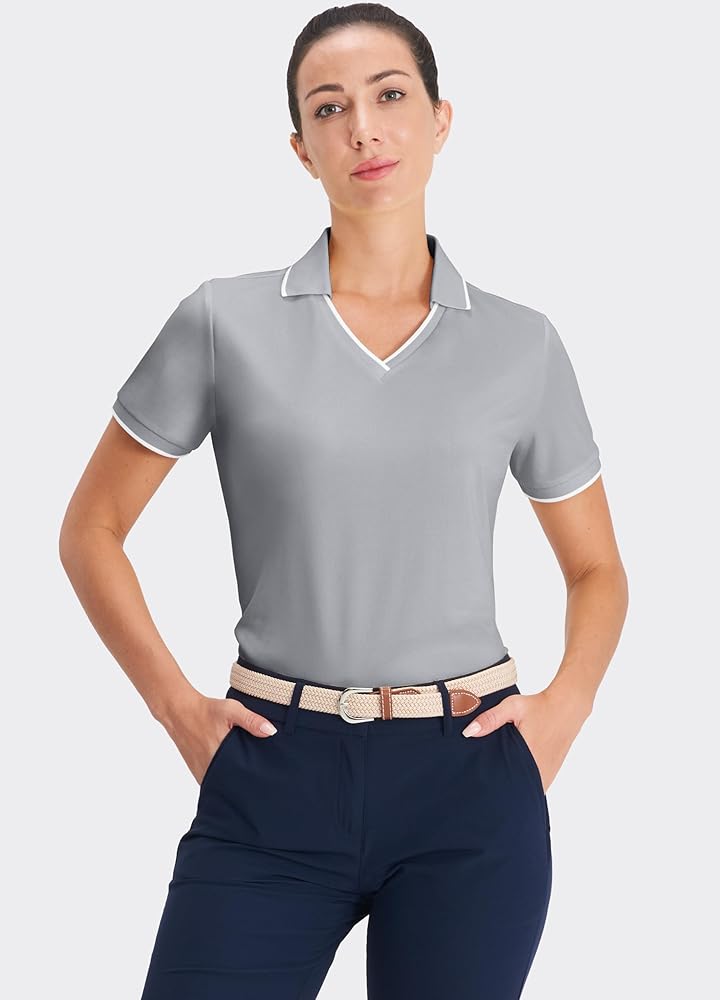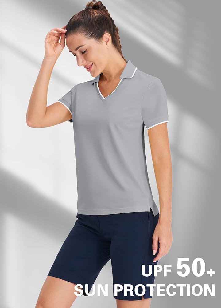 قمصان بولو Hiverlay للنساء، قمصان جولف بياقة على شكل حرف V، قمصان تنس، سريعة الجفاف، حماية من الشمس، خفيفة الوزن، رمادي XXXL