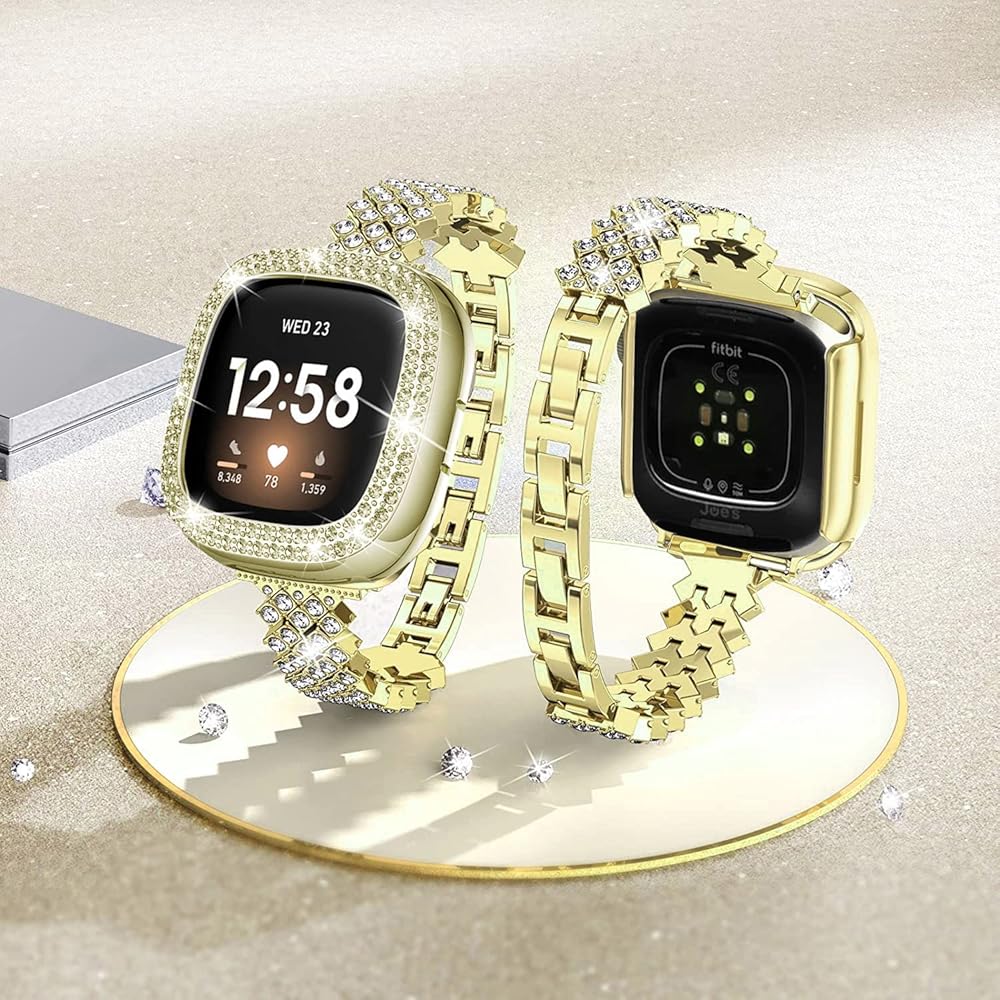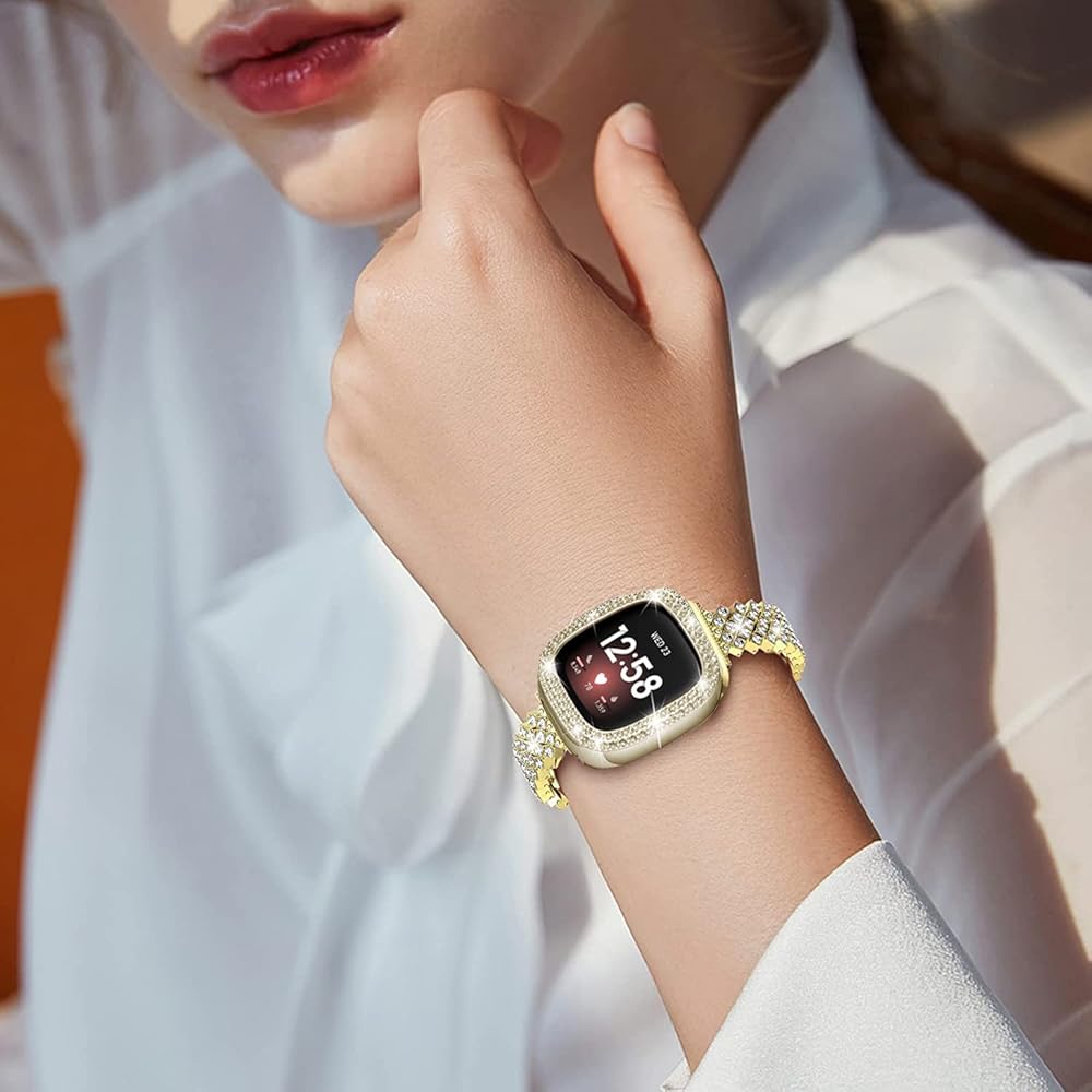 يتميز هذا السوار البديل بسوار كريستالي على شكل حرف D وحزام جلدي يضفي فخامة متواضعة وأناقة كلاسيكية. كما يأتي أيضًا مع حافظة واقية لامعة تحمي وتجميل ساعات Fitbit Sense وVersa 3 الذكية الخاصة بك.