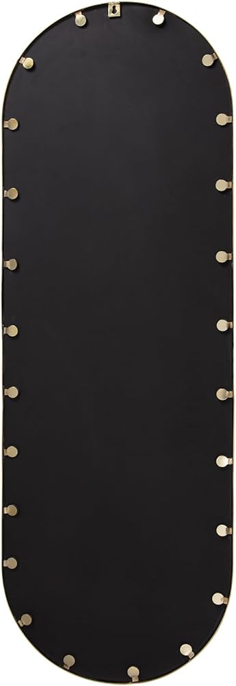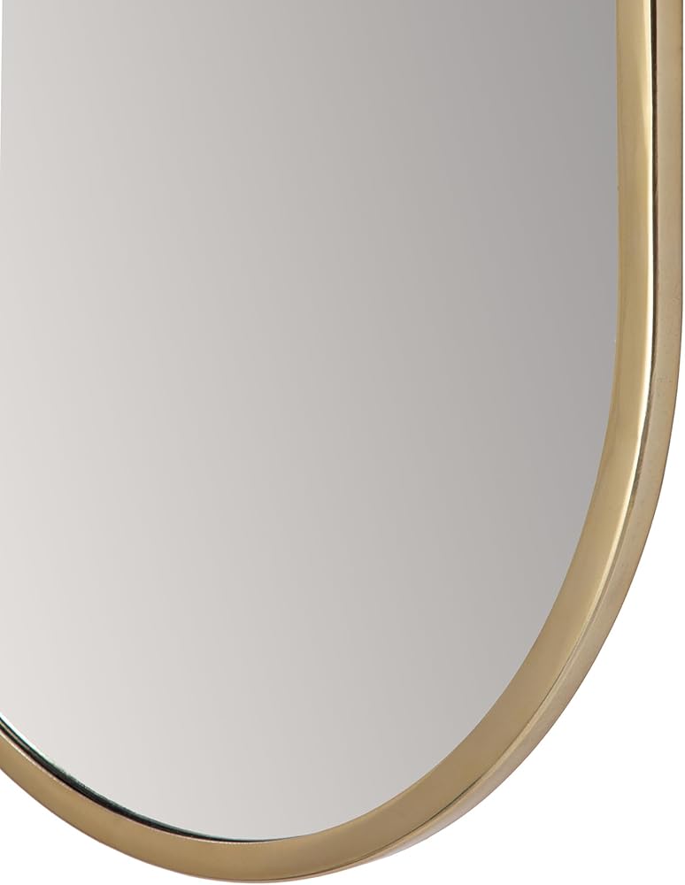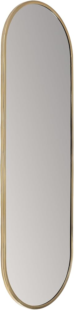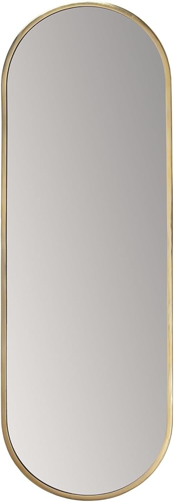 Sleek yet glamorous, this wall mirror adds a touch of luxury and lightness to your home. The oblong frame is finished in a reflective gold and is thin enough to feel modern while the rounded ends give it an Art Deco vibe. Penelope Oval Linear 60-in Mirror measures 60-in long by 20-in wide.