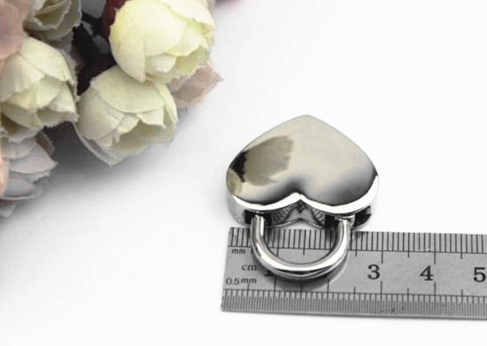 BeeSpring 1 قطعة ارتفاع مصقول على شكل قلب هيكل عظمي قفل مفتاح، استبدال حقيبة يد، قفل القوس الزفاف - اللون الفضي