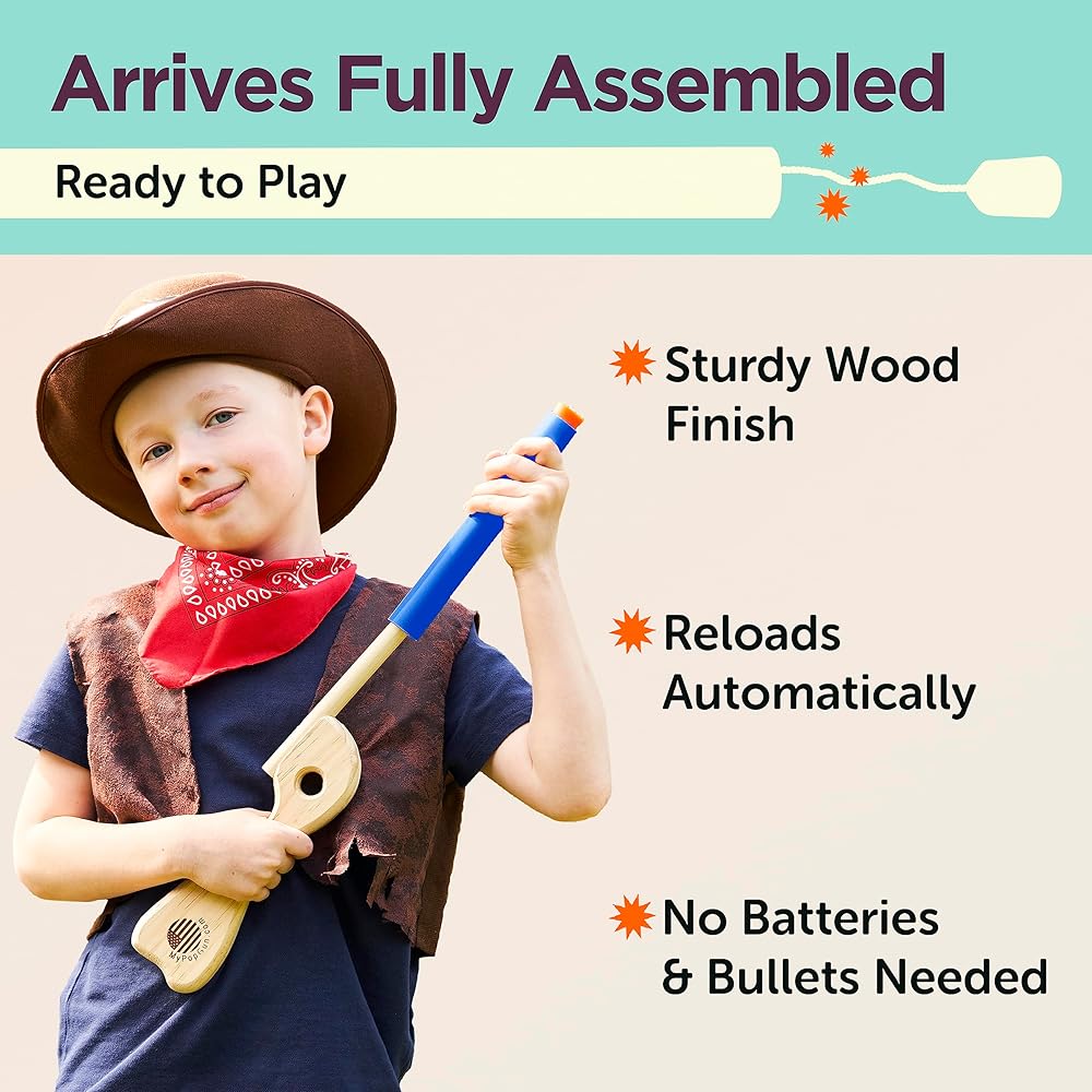 • صُنع في الولايات المتحدة الأمريكية: كشركة أمريكية، نقوم بصنع مسدسات ألعاب للأطفال يدويًا لأكثر من 30 عامًا مع رعاية كبيرة واهتمام بالتفاصيل لإنشاء ألعاب مسدسات خشبية صلبة مع سدادات متينة؛ لا يوجد بلاستيك رخيص أو تشويش هنا!