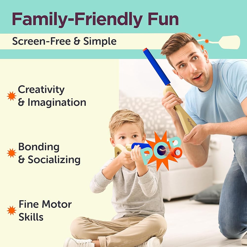 لعبة Blue Toy Pop Gun للأطفال - مسدسات لعبة خشبية للأولاد من سن 3 إلى 7 سنوات - مسدس مزيف بلمسة نهائية من الخشب القوي وغطاء بوبر بلاستيكي - بنادق يدوية ممتعة وألعاب مسدس للأطفال الصغار والكبار - صنع في الولايات المتحدة الأمريكية