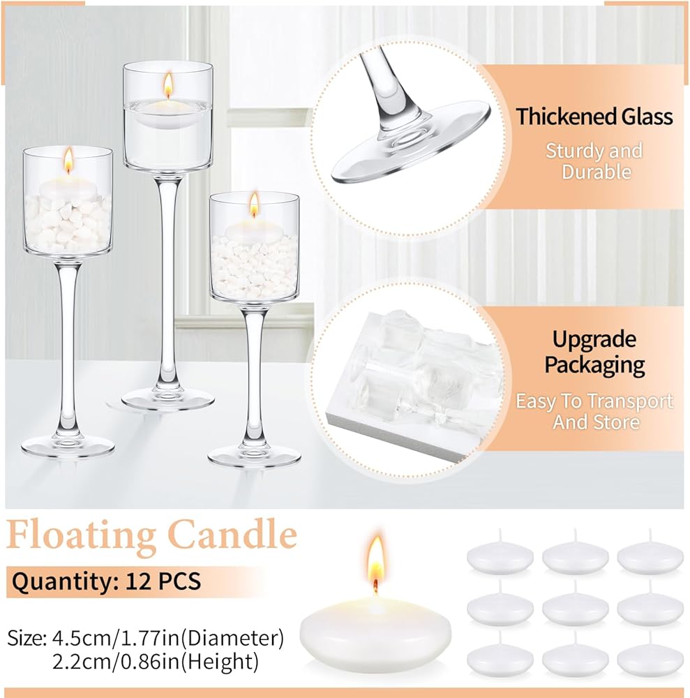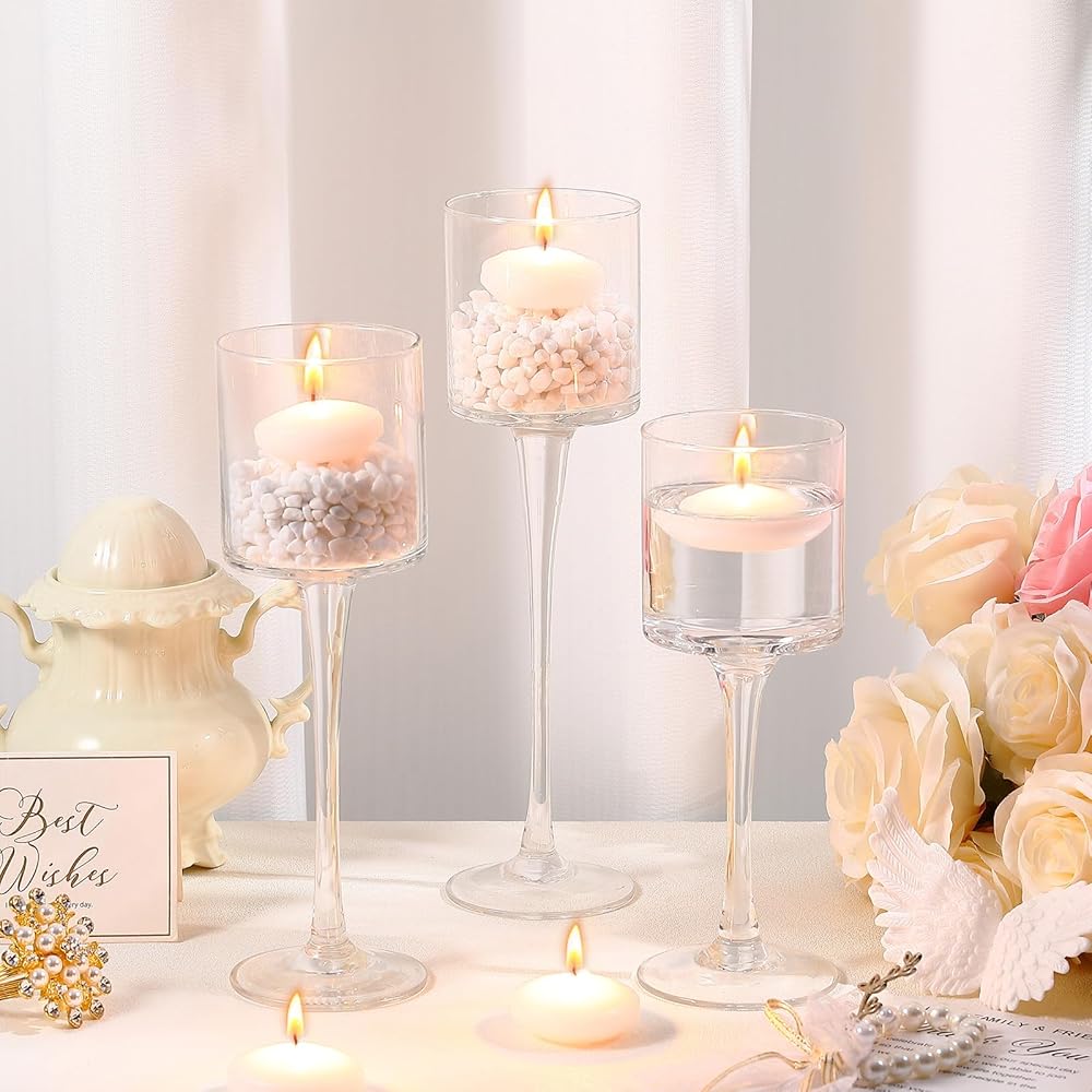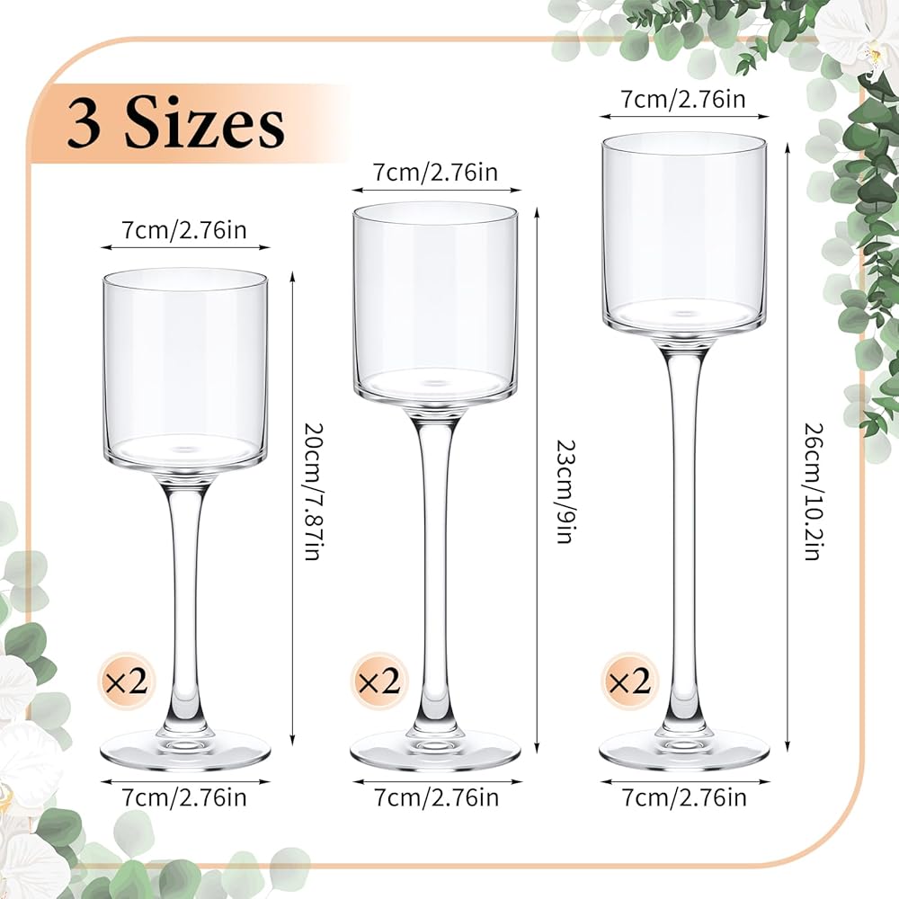 Glass candle holders: about 7.87 x 2.76 x 2.76 inches/ 20 x 7 x 7 cm, 9.06 x 2.76 x 2.76 inches/ 23 x 7 x 7 cm and 10.24 x 2.76 x 2.76 inches/ 26 x 7 x 7 cm