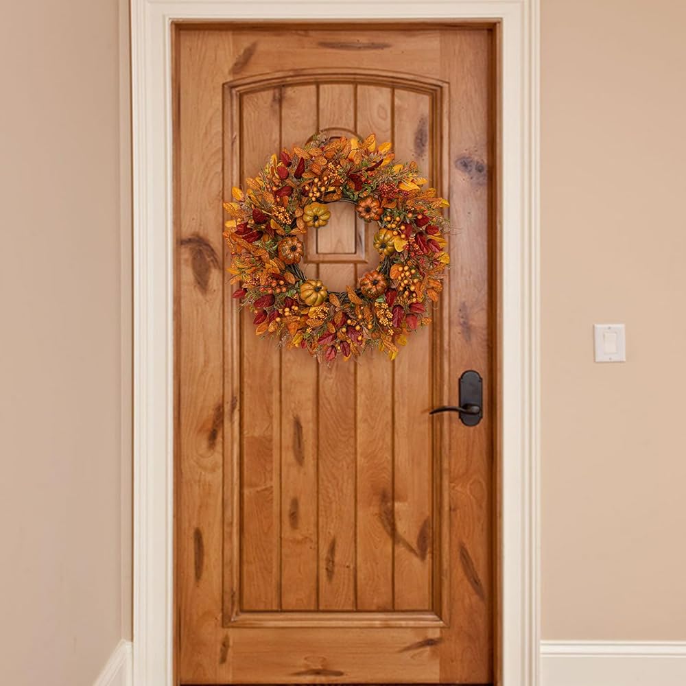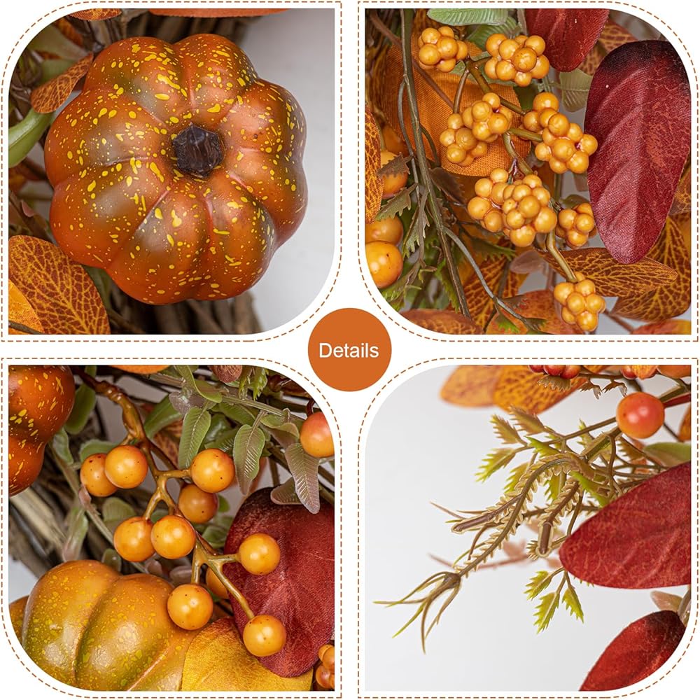【High-quality】We use premium materials to ensure the high quality of the fall wreath. This not only makes the Thanksgiving wreath look very realistic, but also allows it to be used for a long time, lighting up your home throughout the autumn.