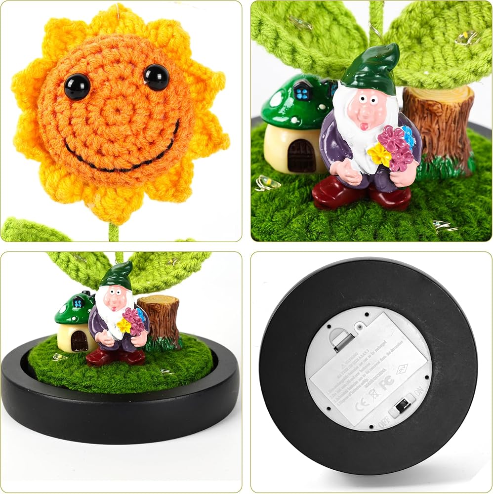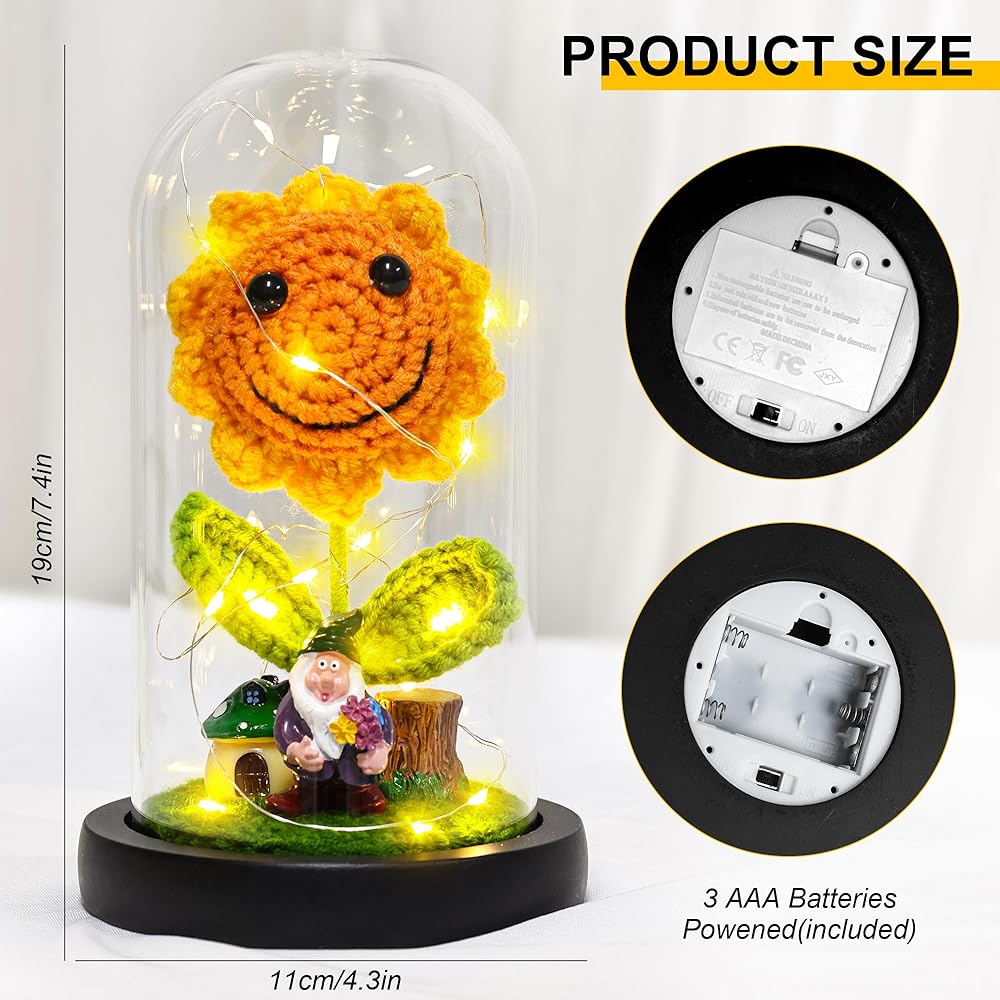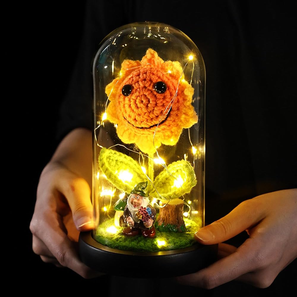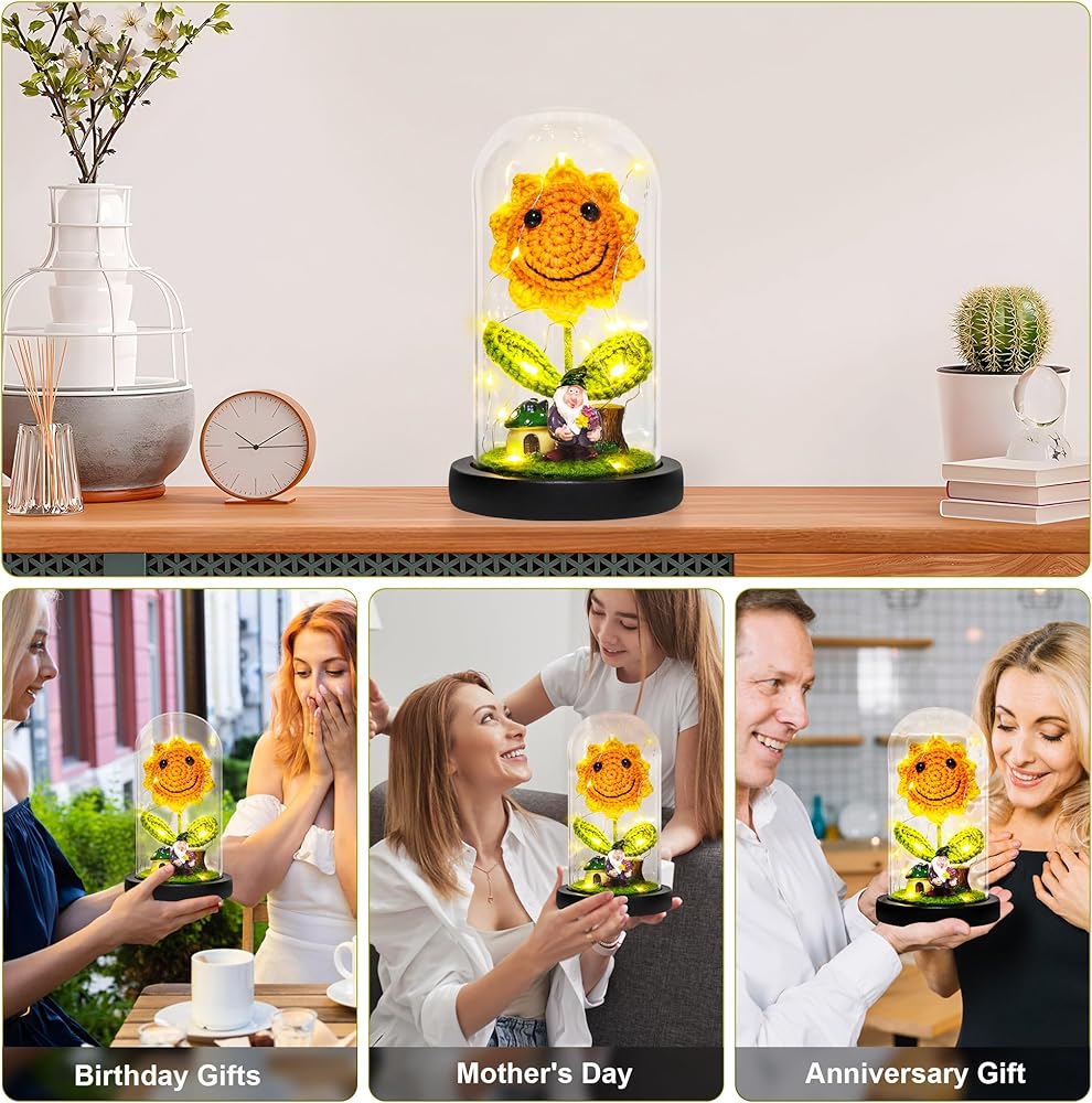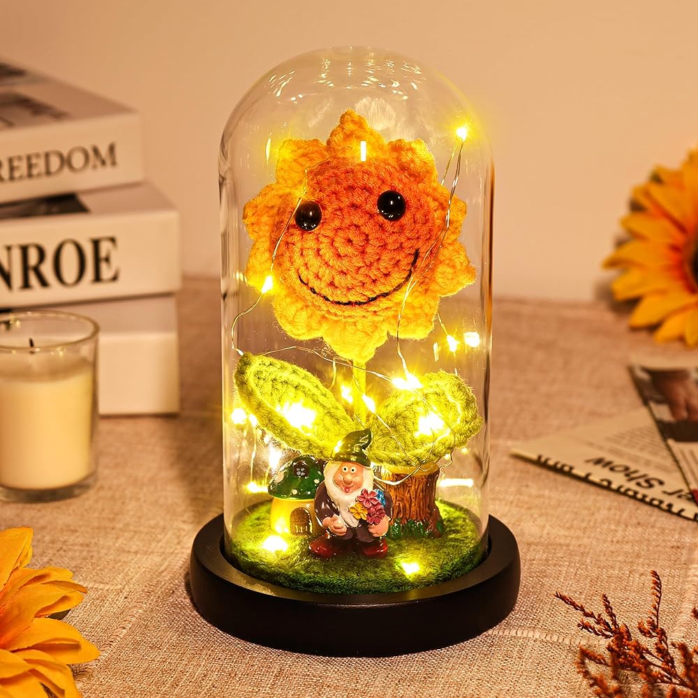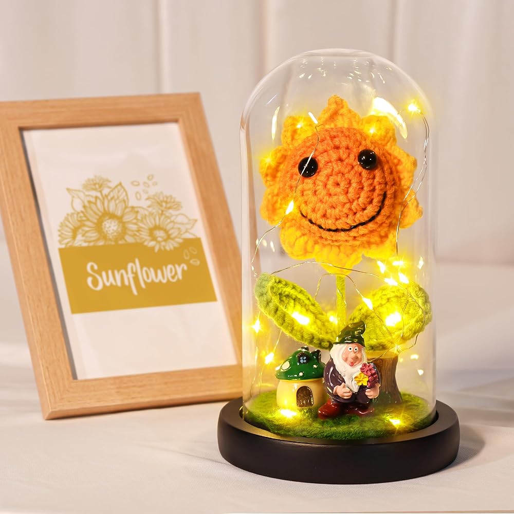 Sunflower Gifts for Women Sunflower Lamp Artificial Crochet Flowers in Glass Dome Mothers Day Anniversary Birthday Gifts