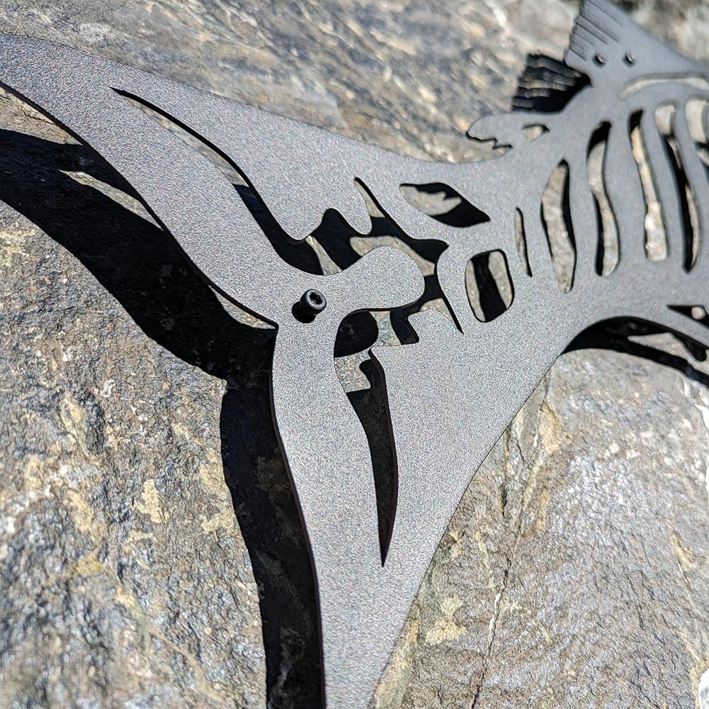 Easy Installation: Equipped with 2 standoff screws, and a hanging hook, this metal art stands off the wall to create an attractive shadow effect. Lightweight design allows for secure hanging with just one nail or pin. The screws and hanging hook are not pre attached so during assembly you choose the direction the Salmon will point.