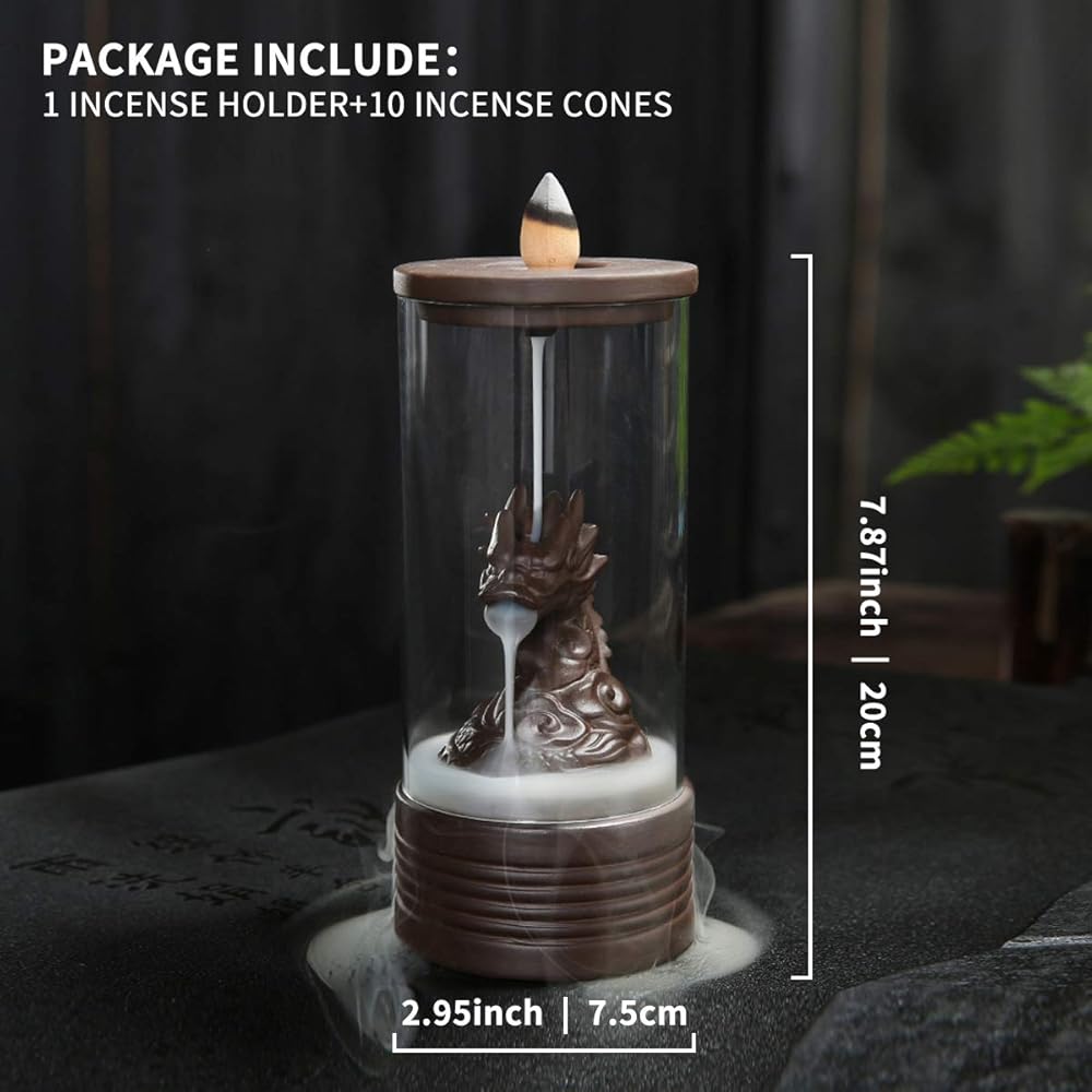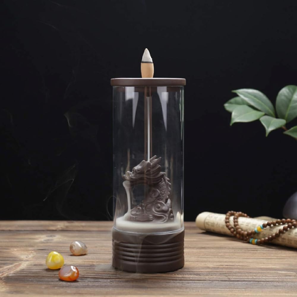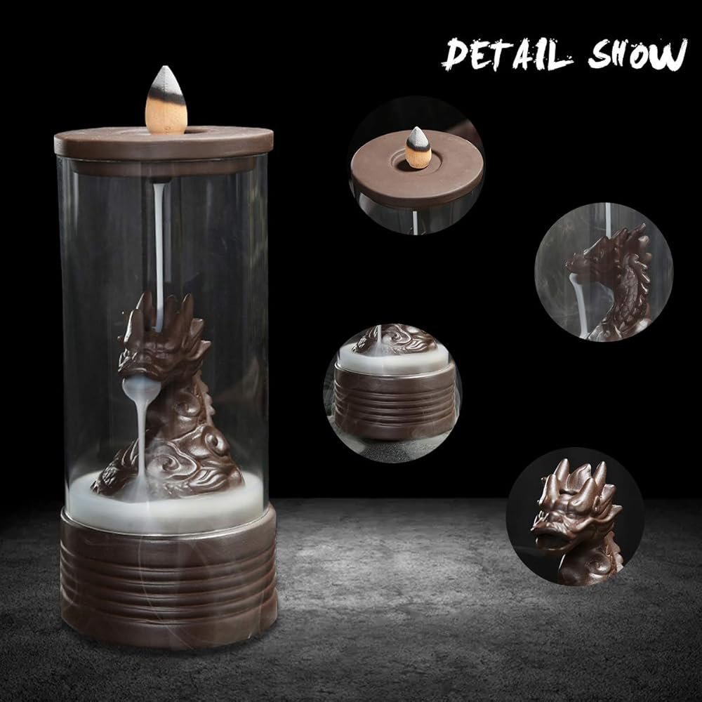حامل بخور سيراميك مصنوع يدويًا من OTOFY، حامل بخور بتدفق خلفي، تمثال مخروطي البخور، ديكور منزلي، ديكورات هدايا، زخارف تمثال (تنين ميمون)