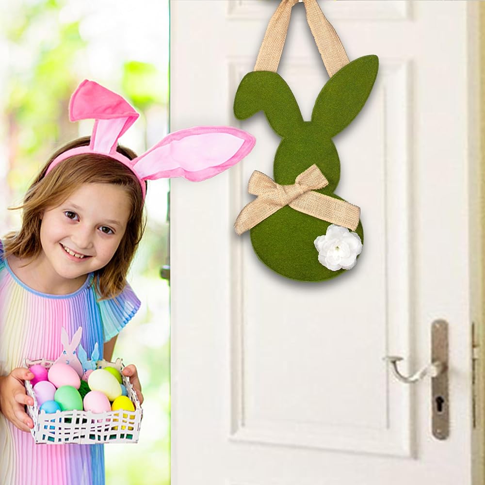 15 بوصة أكاليل أرنب عيد الفصح، إكليل عيد الفصح للباب الأمامي، ديكورات معلقة لعيد الفصح في الأماكن المغلقة لمستلزمات الحفلات ذات الطابع الخاص بالباب الأمامي