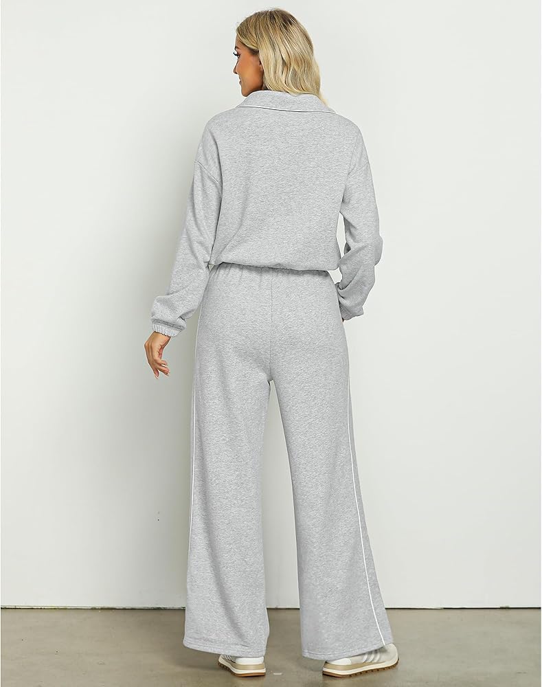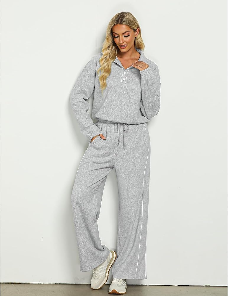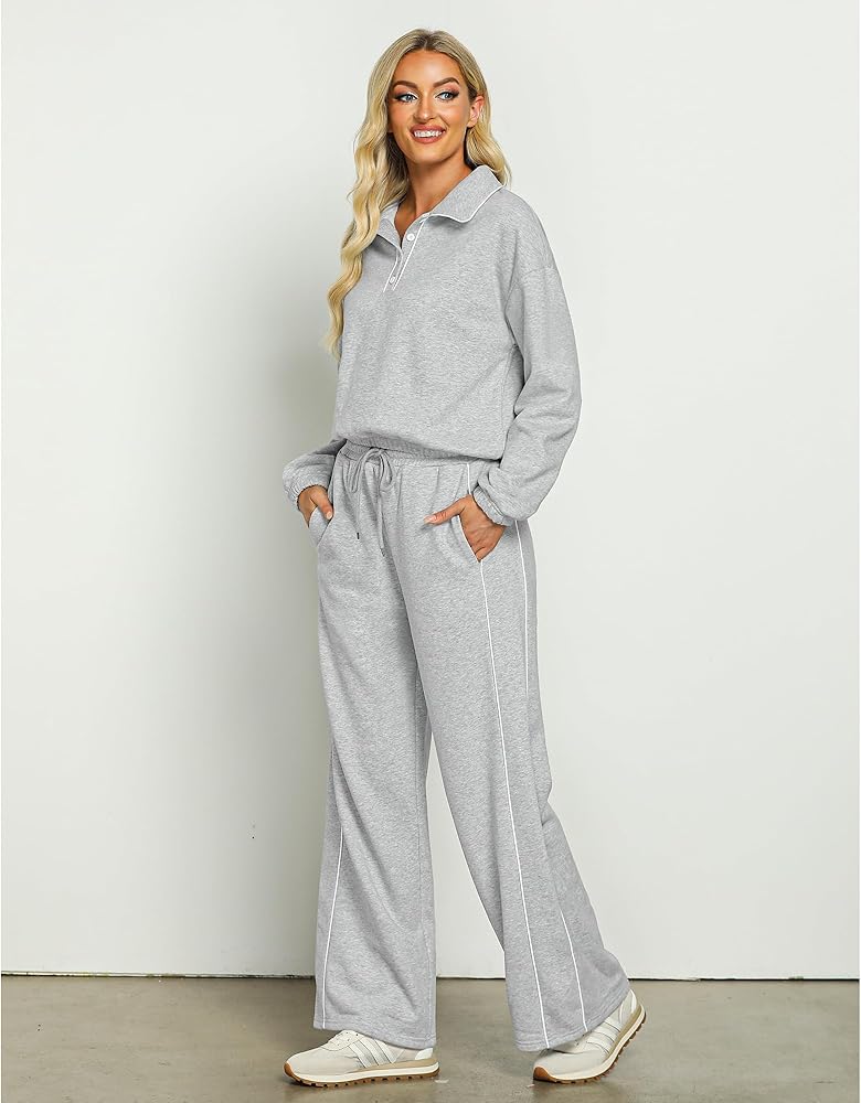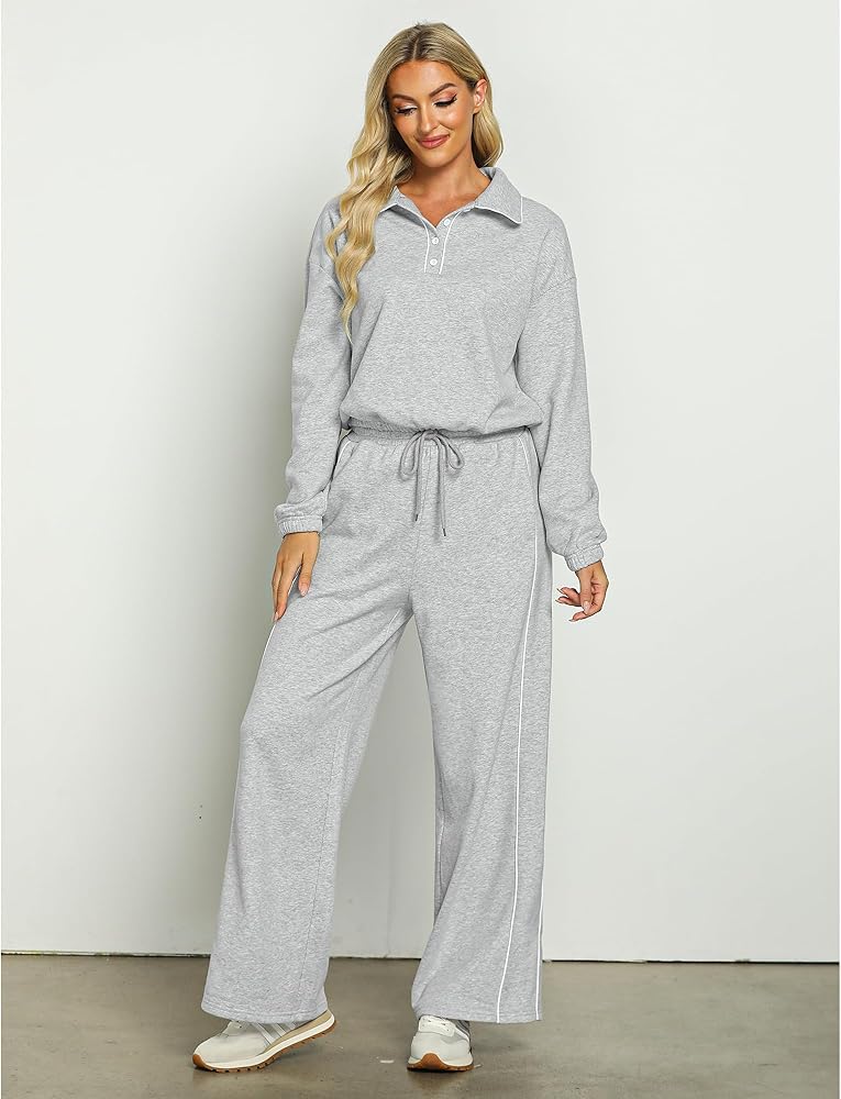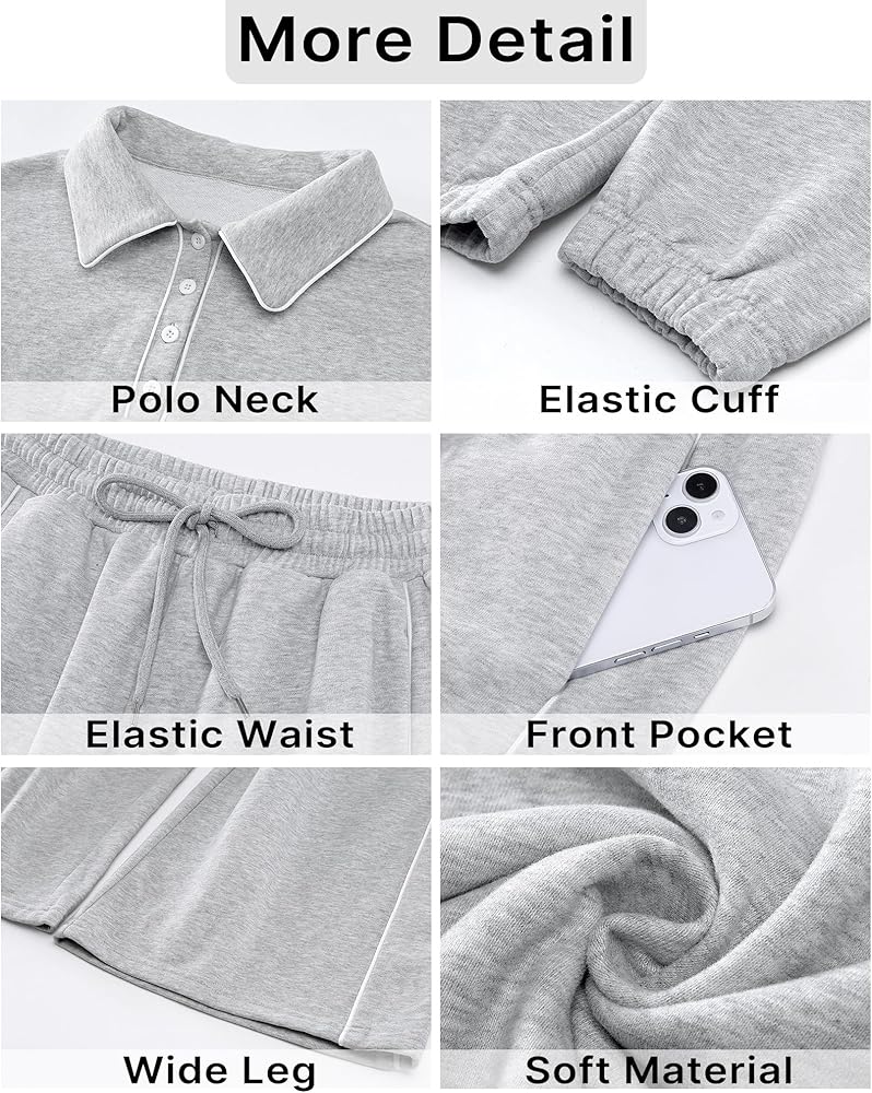 أنيقة وعملية: مجموعتنا النسائية المكونة من قطعتين تتناغم بين الأناقة والراحة في كل غرزة، مع تصميم رقبة بولو أنيق وعملي؛ توفر الأساور والحاشية المرنة ملاءمة آمنة، بينما يبرز الخصر العالي وحزام الخصر شكلك؛ ويضمن تصميم الساق الواسعة مظهرًا جذابًا ومتعدد الاستخدامات، وجيد للأناقة والسهولة اليومية