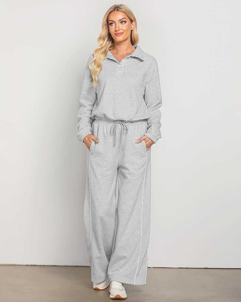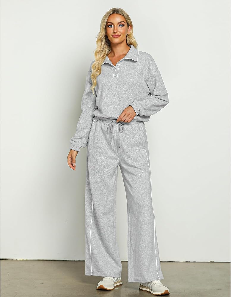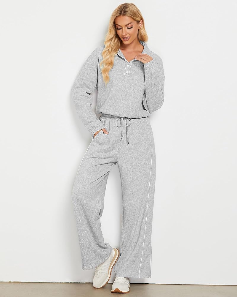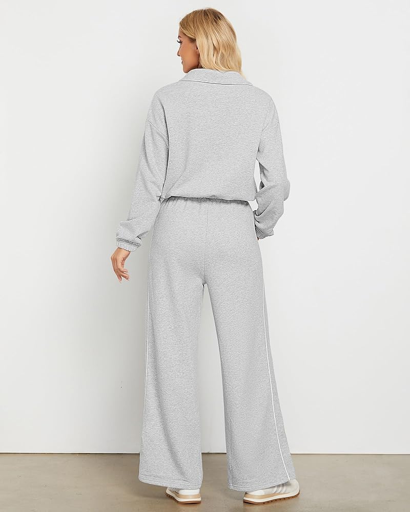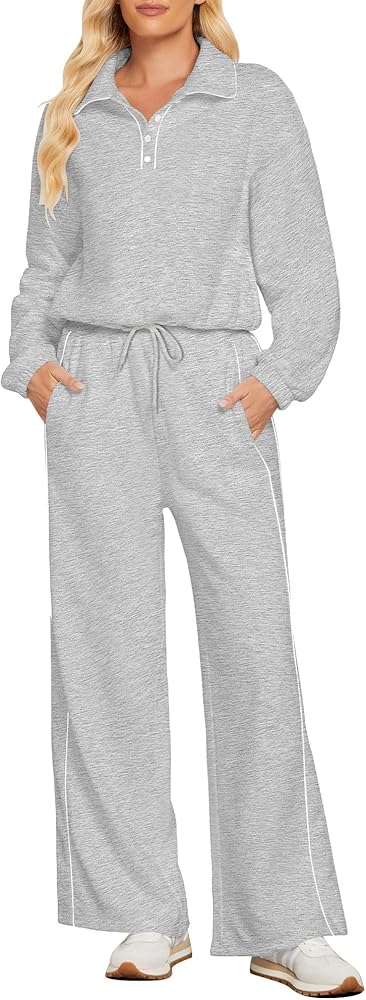 أنيقة وعملية: مجموعتنا النسائية المكونة من قطعتين تتناغم بين الأناقة والراحة في كل غرزة، مع تصميم رقبة بولو أنيق وعملي؛ توفر الأساور والحاشية المرنة ملاءمة آمنة، بينما يبرز الخصر العالي وحزام الخصر شكلك؛ ويضمن تصميم الساق الواسعة مظهرًا جذابًا ومتعدد الاستخدامات، وجيد للأناقة والسهولة اليومية