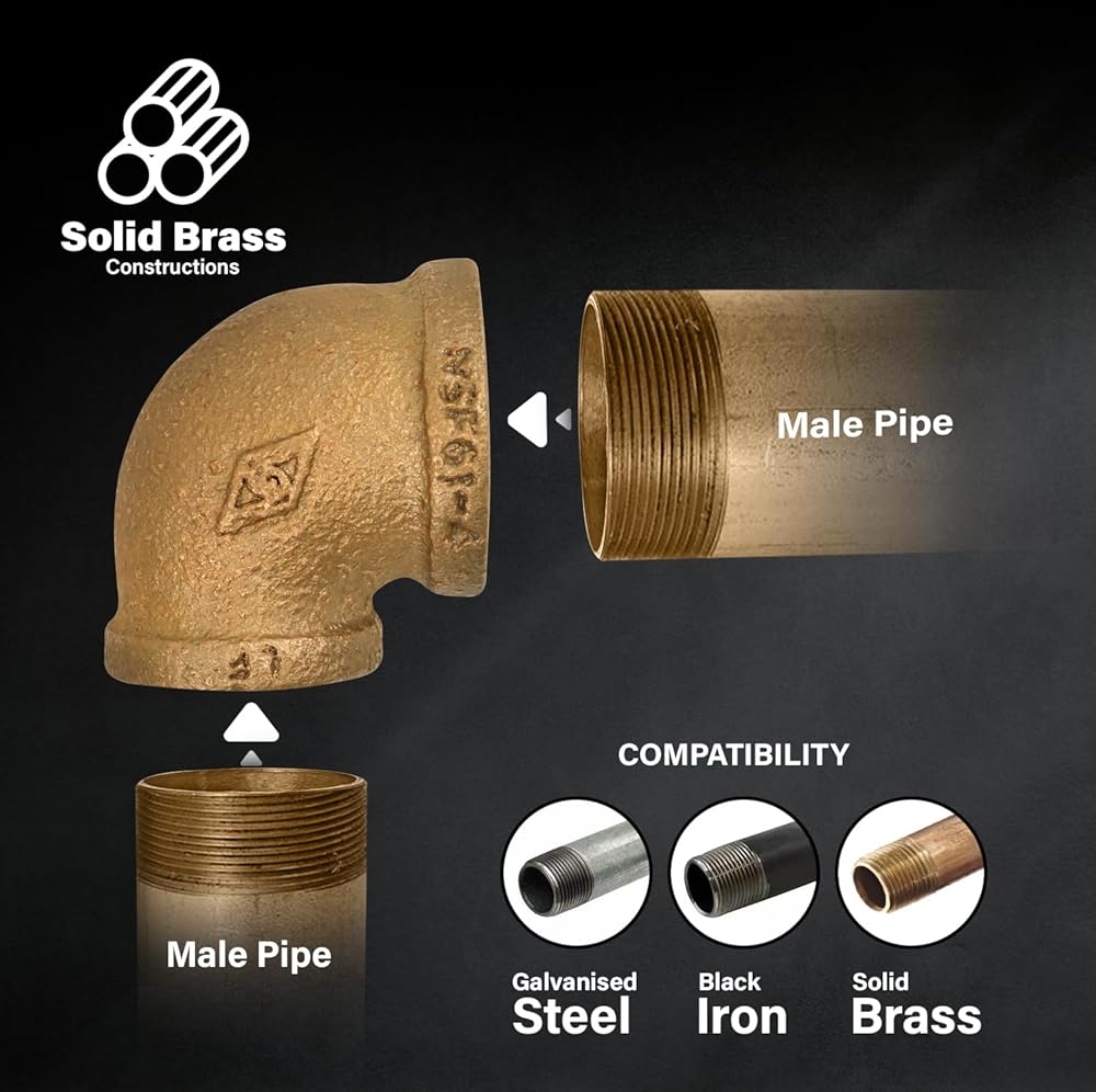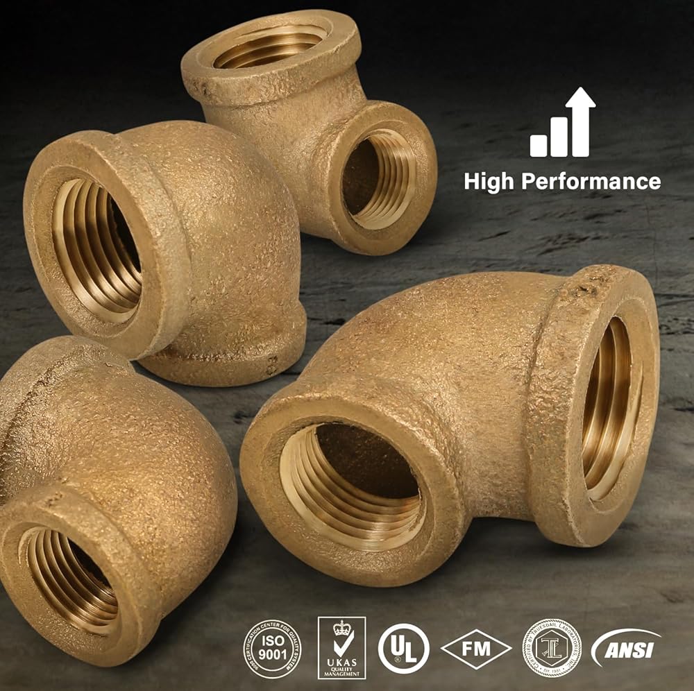 This is an Supply Giant lead free brass reducing elbow, with 90 degree bend and with 1-1/4 x 1 inch female threaded ends to connect and change the flow direction between two pipes of different sizes. In particular, the part is made of of brass and is designed for applications where the pressure does not exceed 125 LB. Furthermore, the part is produced in an ISO 9001:2000 qualified production environment and it has been pressure tested with air in the factory. The class 125 coupling is made from brass, which is more economical, machinable, and offers greater corrosion resistance than steel. Class is a standard relating to tolerance, construction, dimension, and wall thickness, but it is not a direct measurement of maximum working pressure. Brass finished plumbing fitting, made from premium materials, this plumbing fitting offers great function and value for your home. In addition, the fitting complies to the applicable ANSI and to the ASTM B62 standards and it is approved by TL in meeting NSF/ANSI 61-8 standards for quality assurance. ⚠ California Proposition 65 Warning: This product is known to the state of California to cause cancer, or other reproductive harm. For more information, go to www.p65warnings.ca.gov.