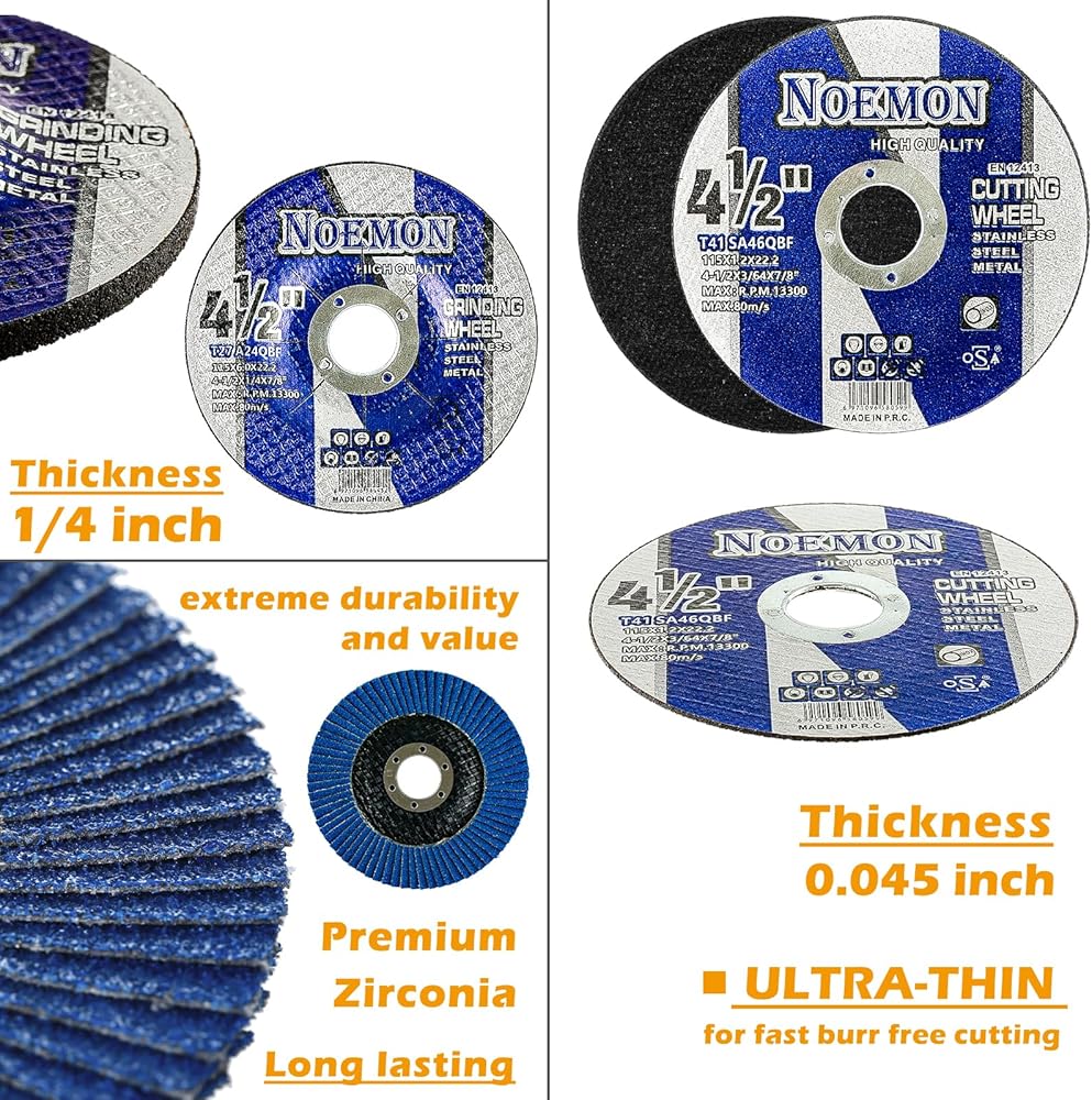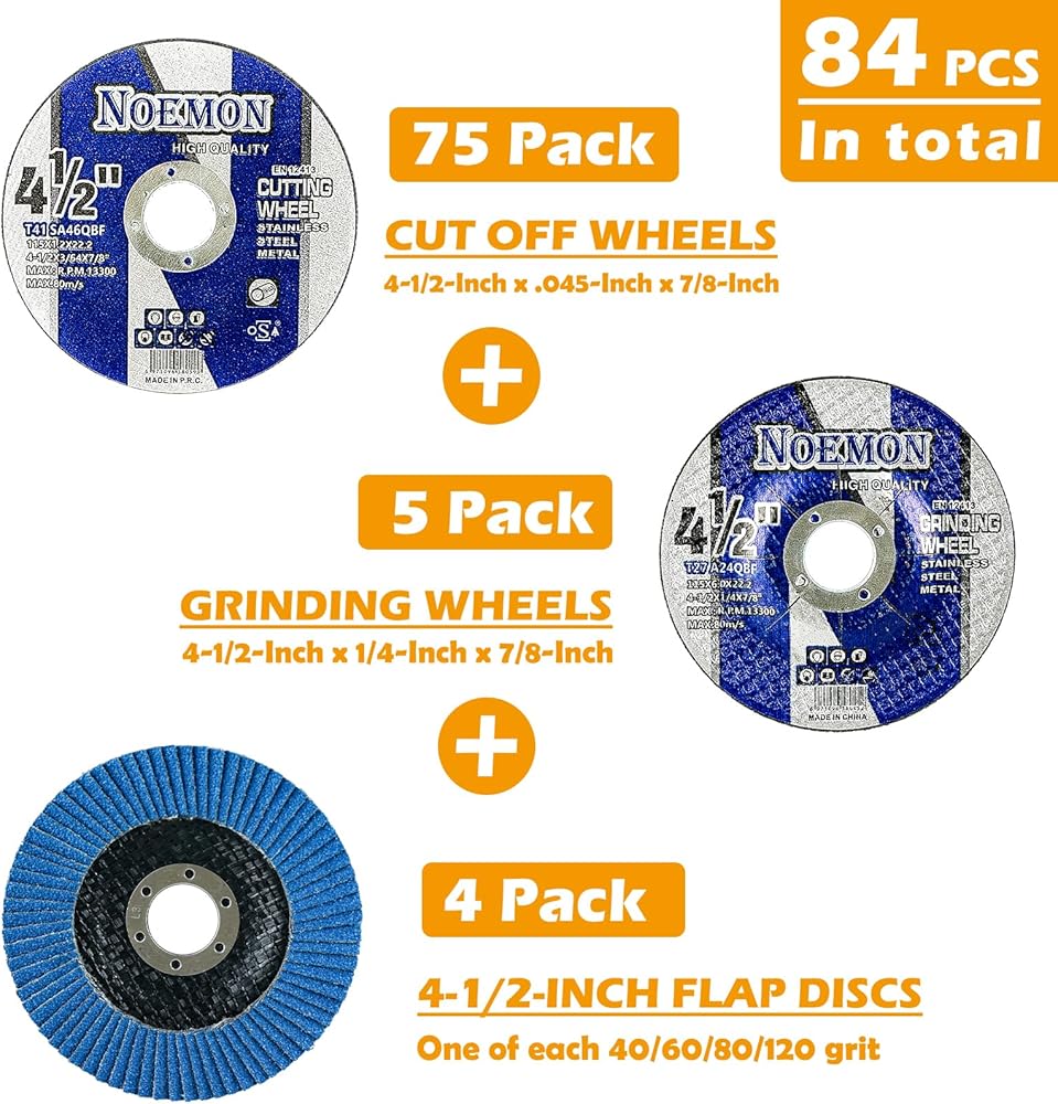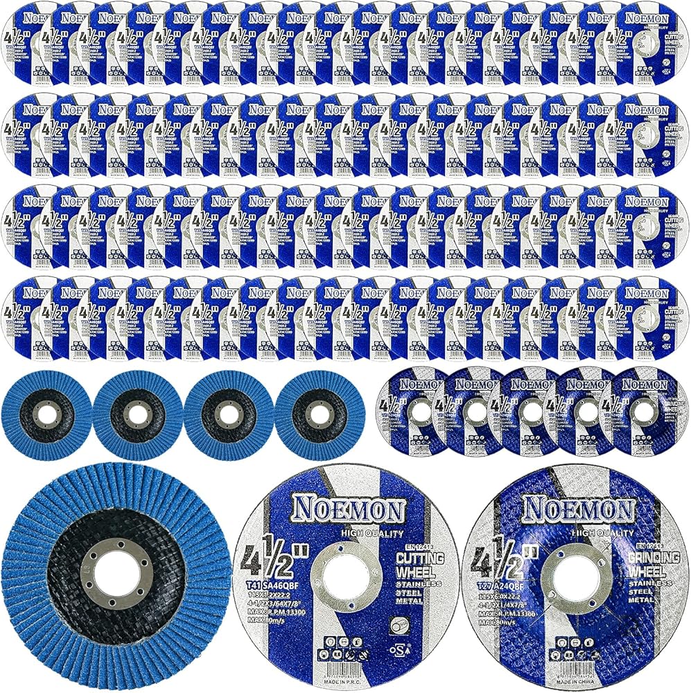 كمية كبيرة وأنواع متنوعة - 75 عبوة من العجلات المقطوعة 11.43 سم مع 5 عجلات مطحنة و4 أقراص قلابة كلها في العبوة، تلبي جميع احتياجاتك. متوافقة مع جميع المطاحن الزاوية مقاس 4-1/2 بوصة (115 مم) مع محور 7/8 بوصة (22.2 مم)، مما يسهل التركيب والاستبدال بسهولة.