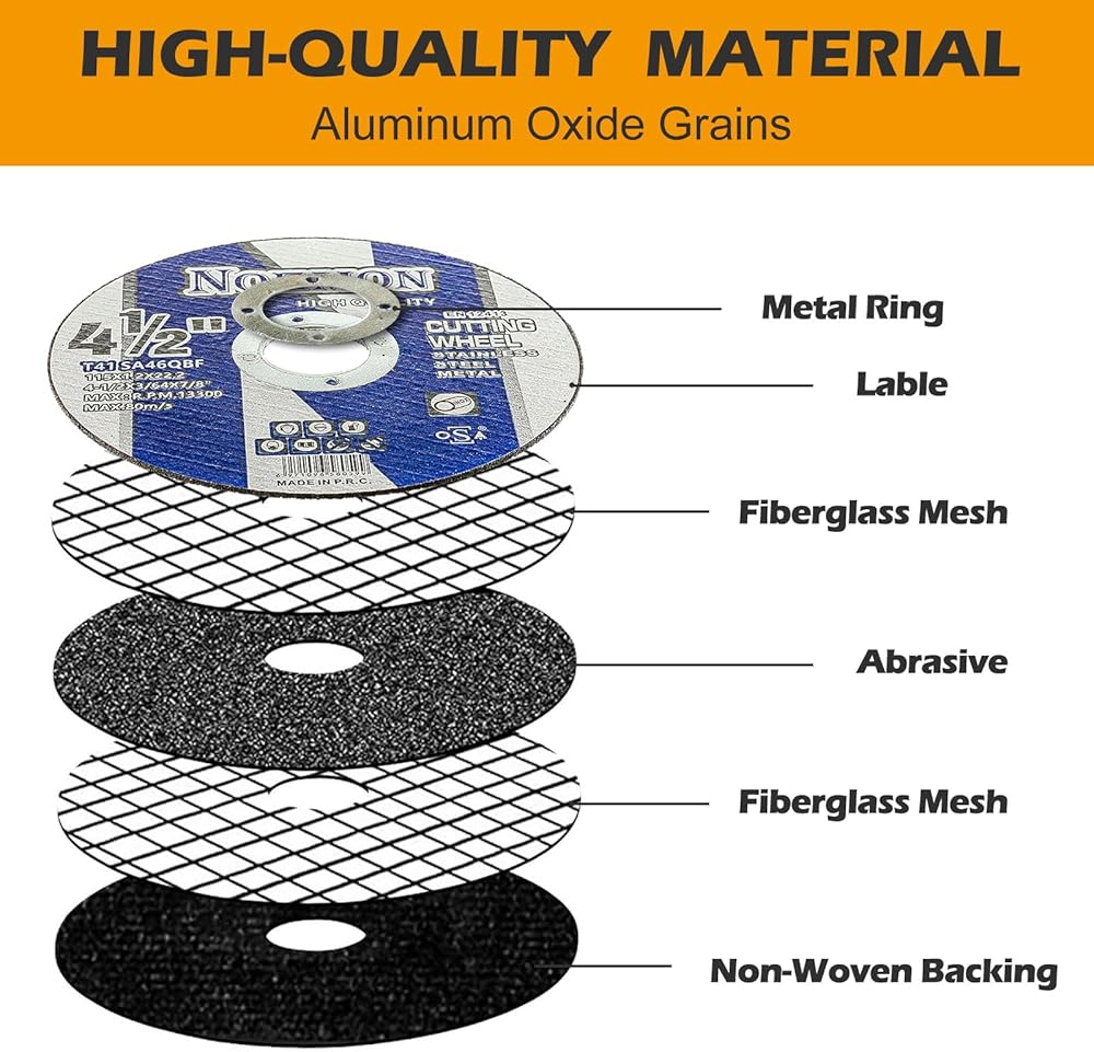 تصميم عجلة القطع الرفيعة: تتميز عجلات القطع OltraOutlet مقاس 4 1/2 بوصة بسمك نحيف يبلغ 0.045 بوصة فقط، مما يوفر تصميمًا رفيعًا للغاية لقطع أكثر دقة وكفاءة. يسمح هذا المظهر الجانبي الرفيع بتقليل هدر المواد ويضمن توليد حرارة أقل أثناء القطع، وبالتالي تقديم عمليات قطع أكثر دقة. وهذا يجعلها مناسبة بشكل خاص للمشاريع التي تتطلب عملاً تفصيليًا.
