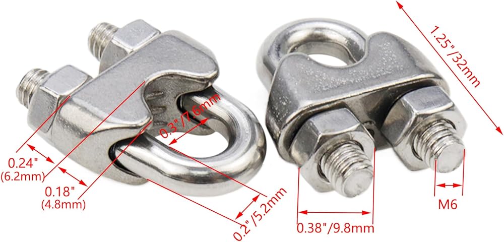 12 حزمة 1/4 بوصة M6 سلك حبل مشبك كابل المشبك الفولاذ المقاوم للصدأ U بولت السرج السحابة
