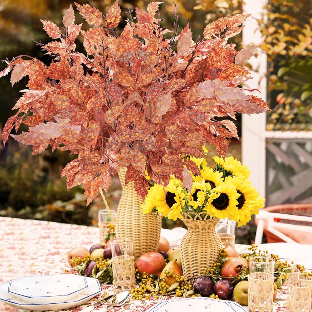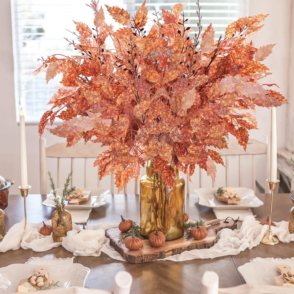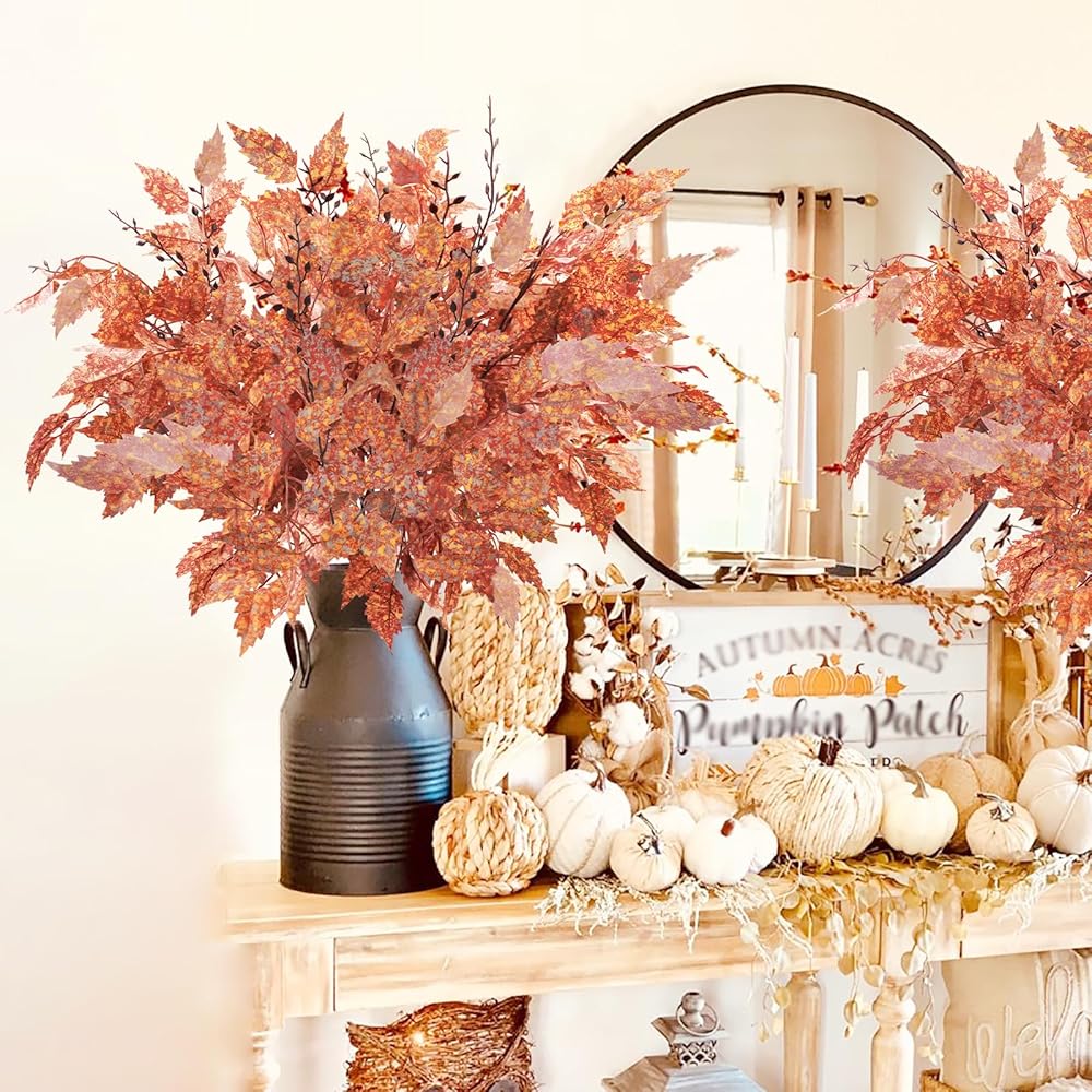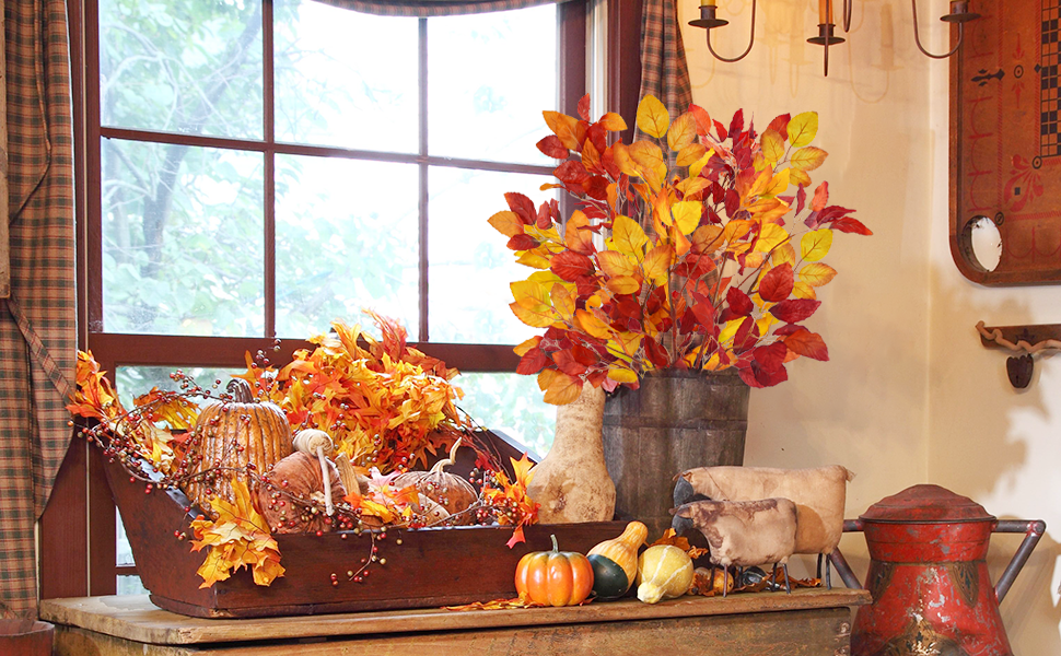خامة عالية الجودة: أوراق الخريف الصناعية مصنوعة بشكل جيد وألوان نابضة بالحياة، وتبدو وكأنها حقيقية. سيقان خضراء صناعية تجعل منزلك مليئًا بأنفاس الخريف