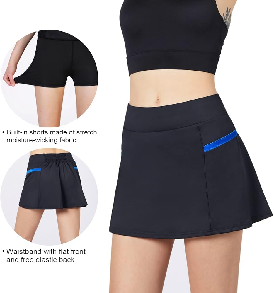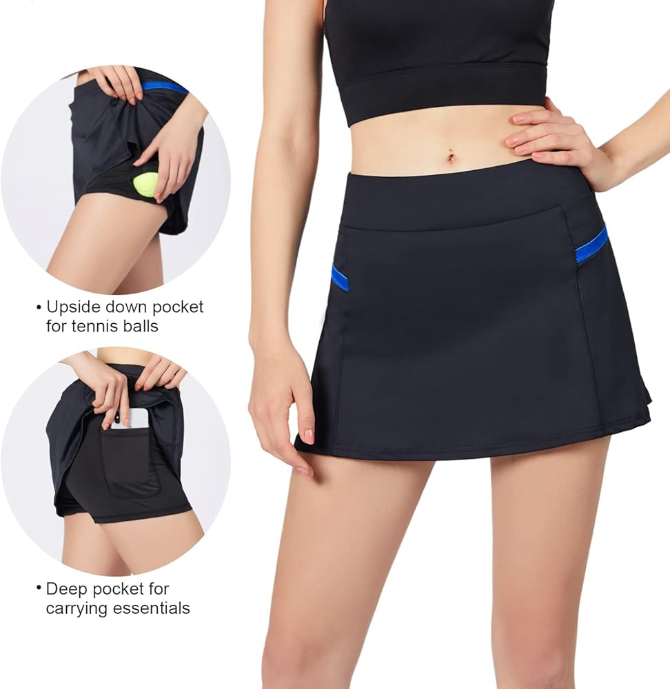 • ملابس أنشطة متعددة الاستخدامات: طبقتان مريحتان - تنورة خارجية وشورت مدمج. تتم خياطة الشورتات بخياطة معززة ويوجد وصلة مجمعة بين الساقين لتقليل الاحتكاك والاحتكاك. ارتداء تنورة بجيبين أمر مريح للغاية. الجيب المقلوب مخصص لحمل كرات التنس ويمكن للجيب الأعمق تخزين ضرورياتك بشكل آمن.