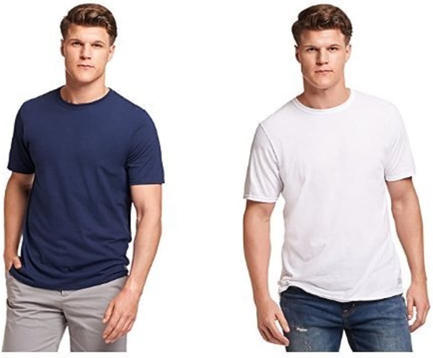 تي شيرت Russell Athletic رجالي من القطن بأكمام قصيرة، أزرق داكن/أبيض، 4XL