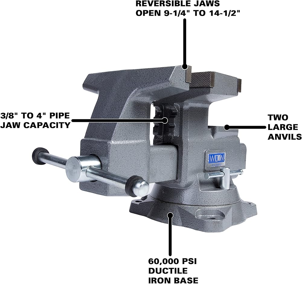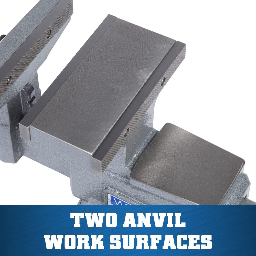 The Wilton Reversible Bench Vise is all about versatility. This vise features jaws that open an incredible distance. It also includes two anvils, a 360° swivel base, and dual lock-downs to ensure maximum stability. The body and movable jaw are 30,000 PSI gray cast iron, and the base is 60,000 PSI ductile iron, so this is a vise that's built to last.