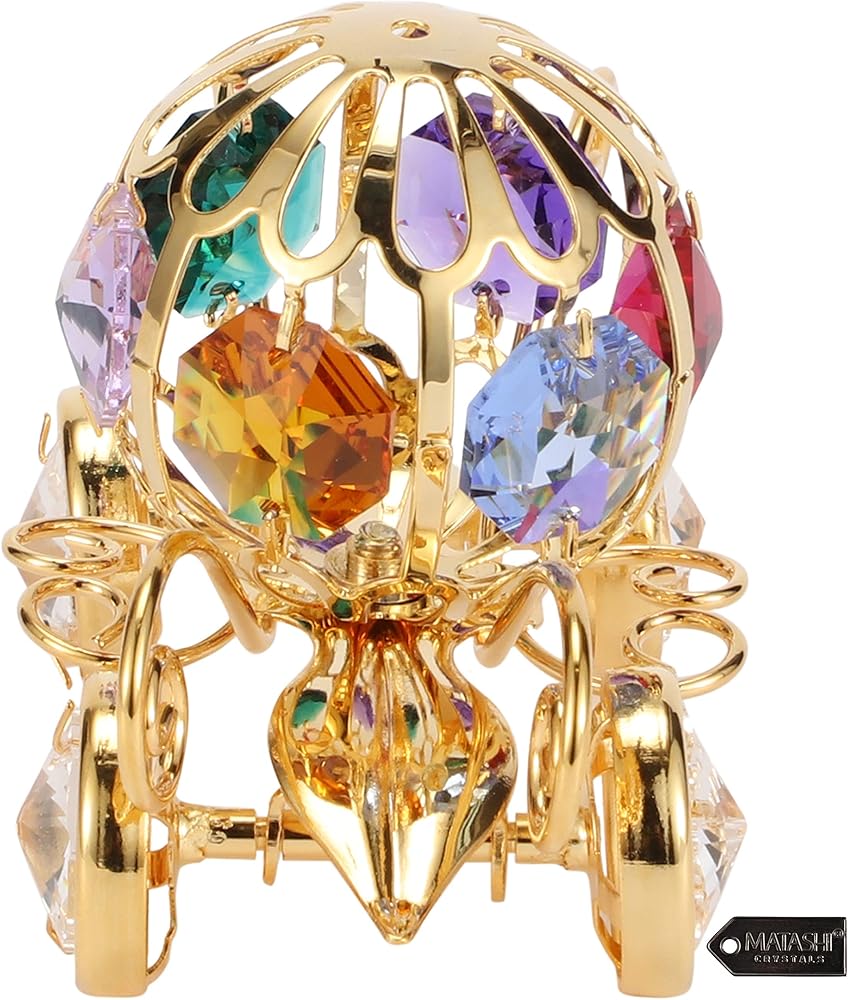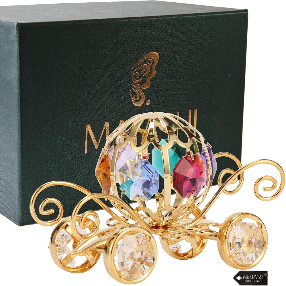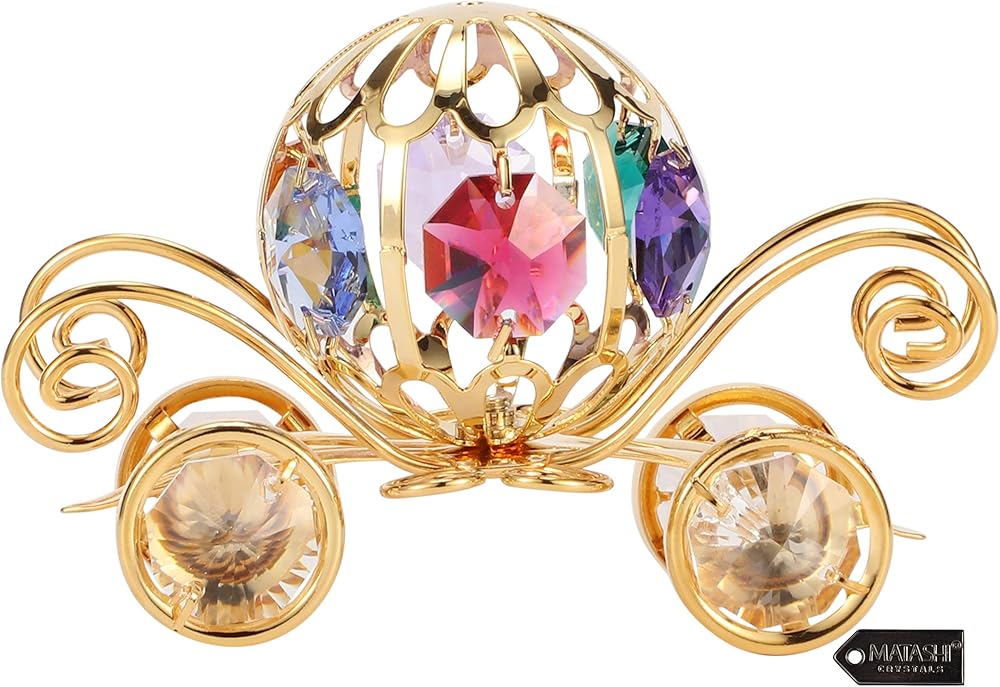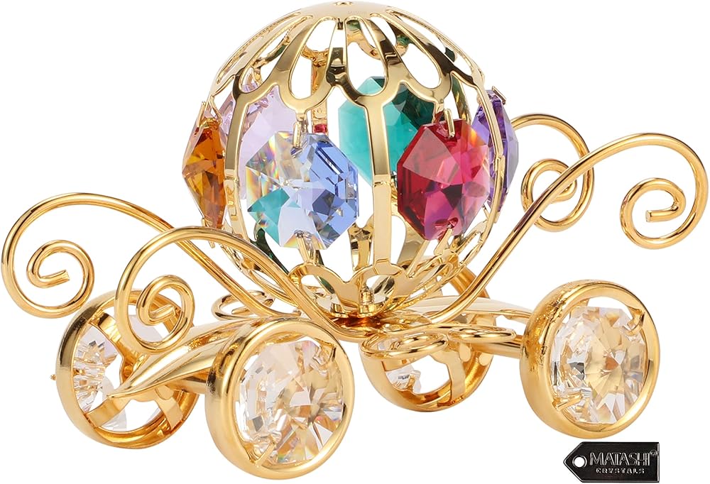 تصميم يلفت الأنظار: هذا المدرب المسرحي المصنوع بشكل مزخرف يذكرنا بالقصة الموجودة في قصة سندريلا؛ مصنوعة من مواد عالية الجودة مثل الذهب عيار 24 قيراط ومرصعة بكريستالات ماتاشي المقطوعة بدقة.