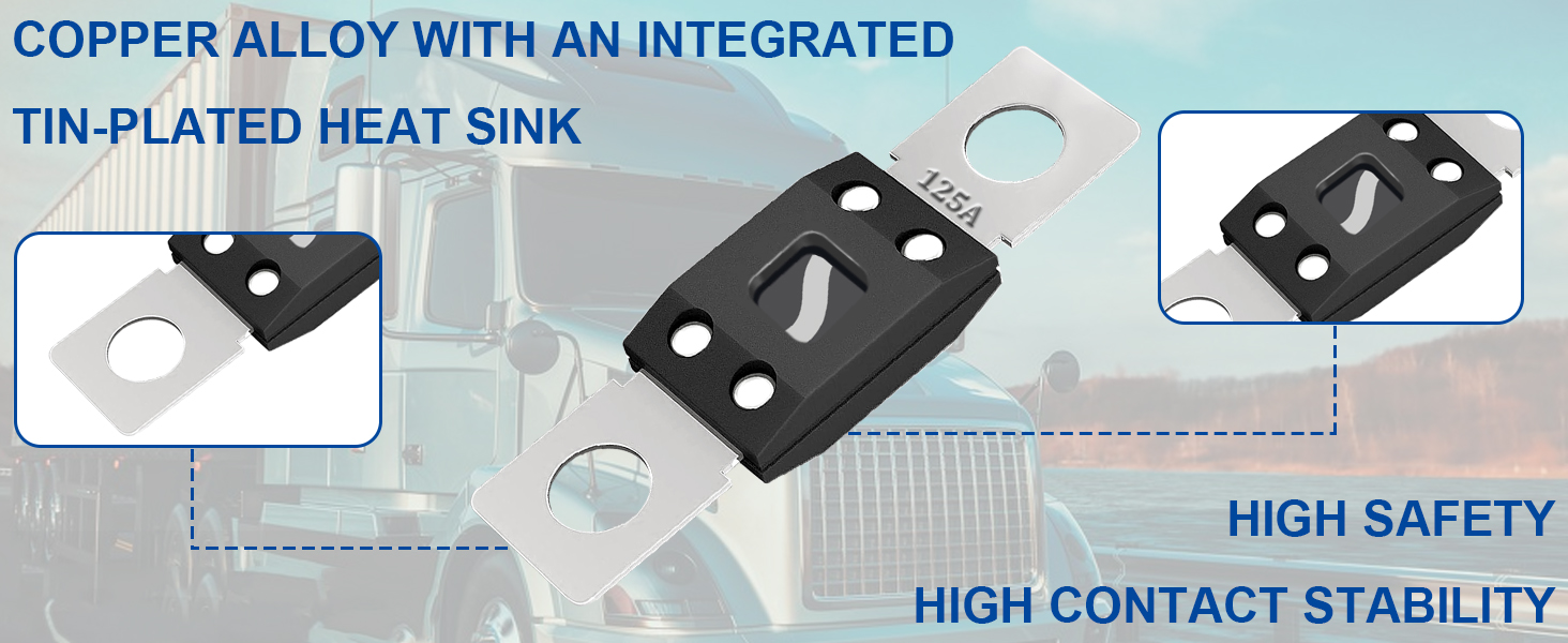 - ※الاستخدام على نطاق واسع: تُستخدم صمامات MEGA 125 أمبير هذه في السيارات والشاحنات والآلات الزراعية ومركبات البناء والحافلات والقوافل.
