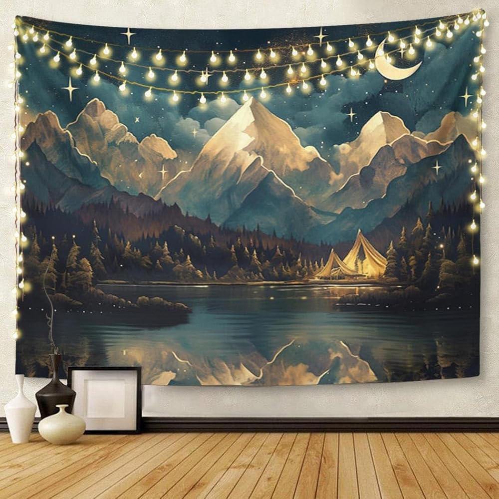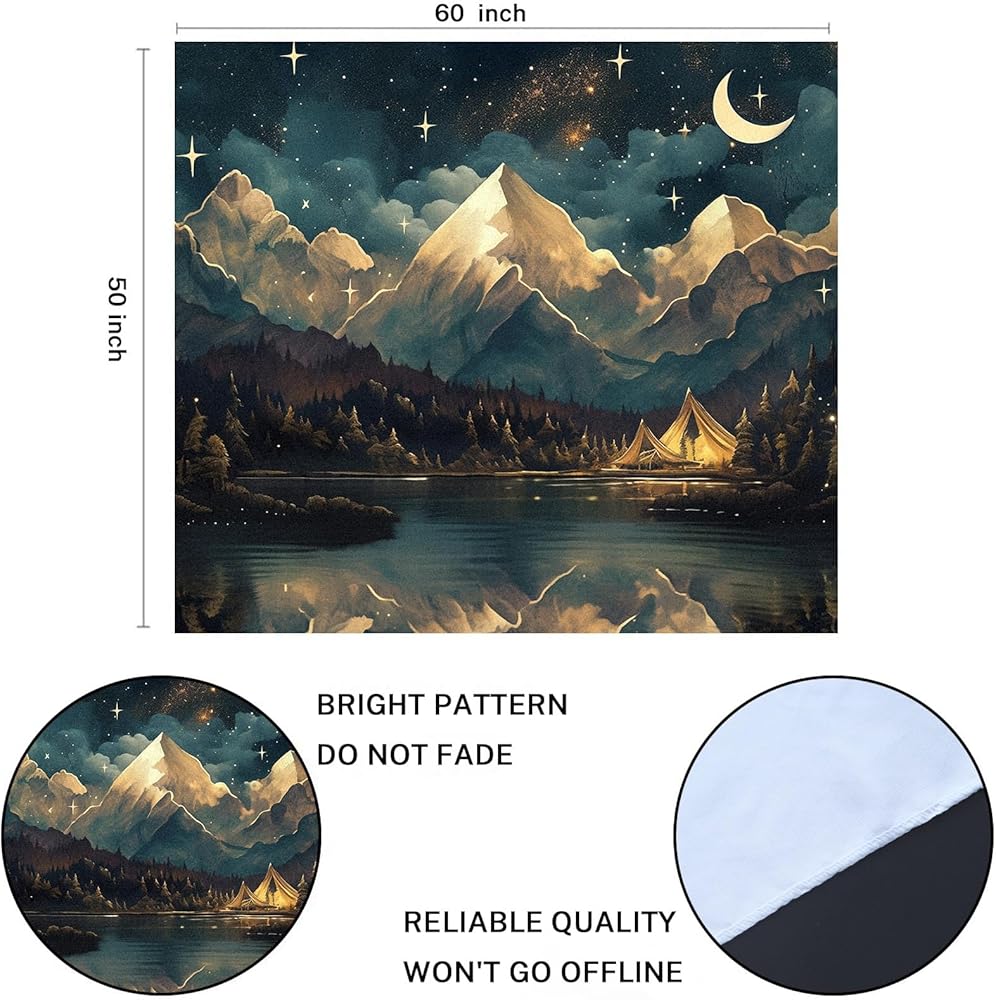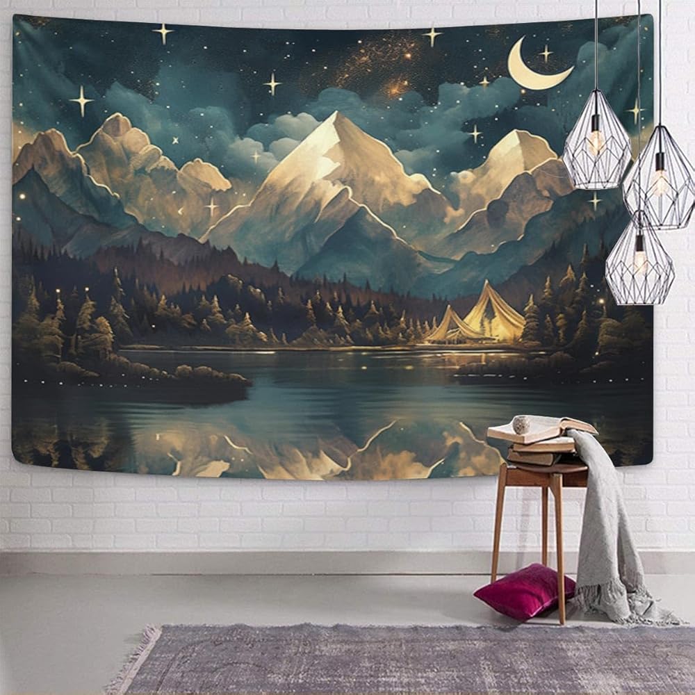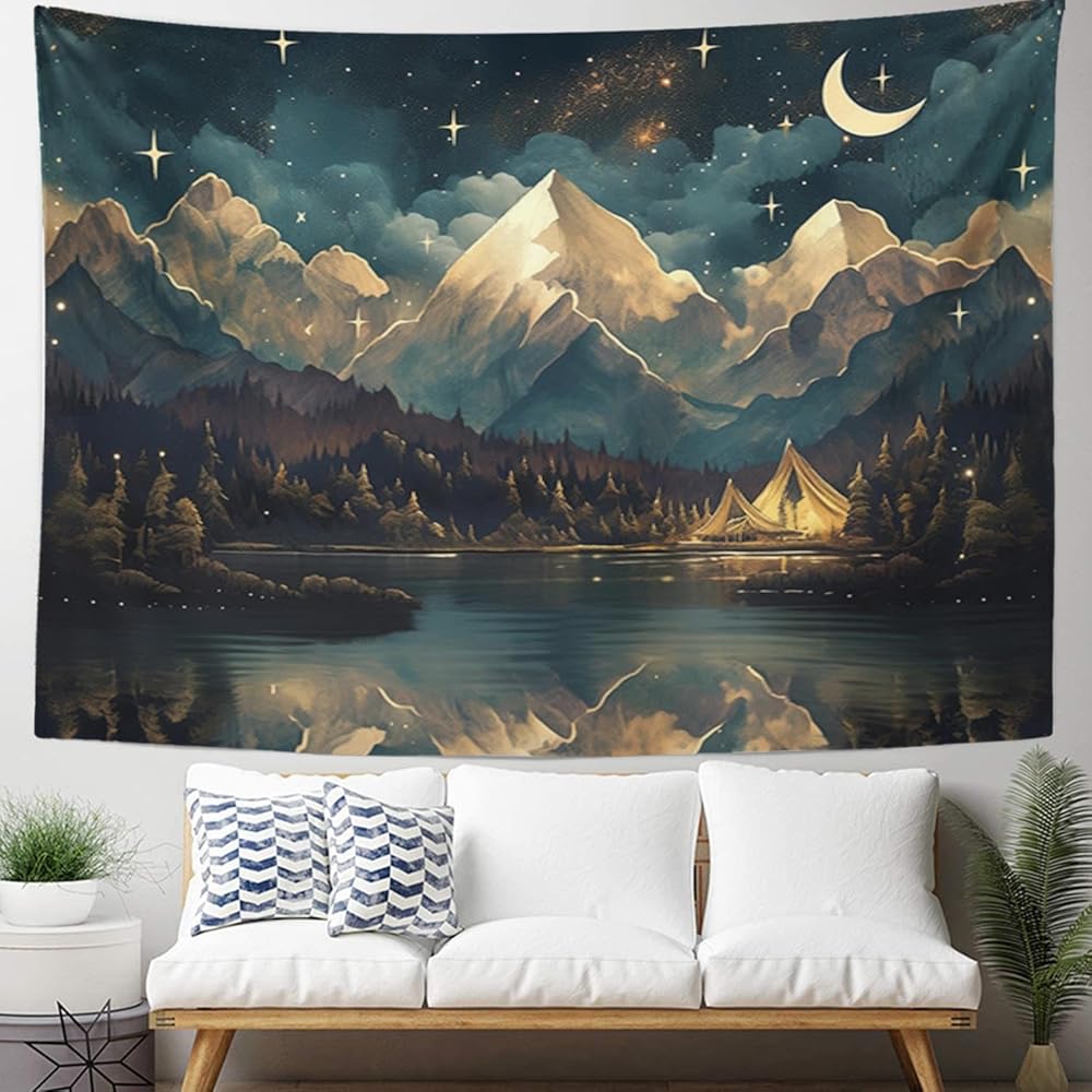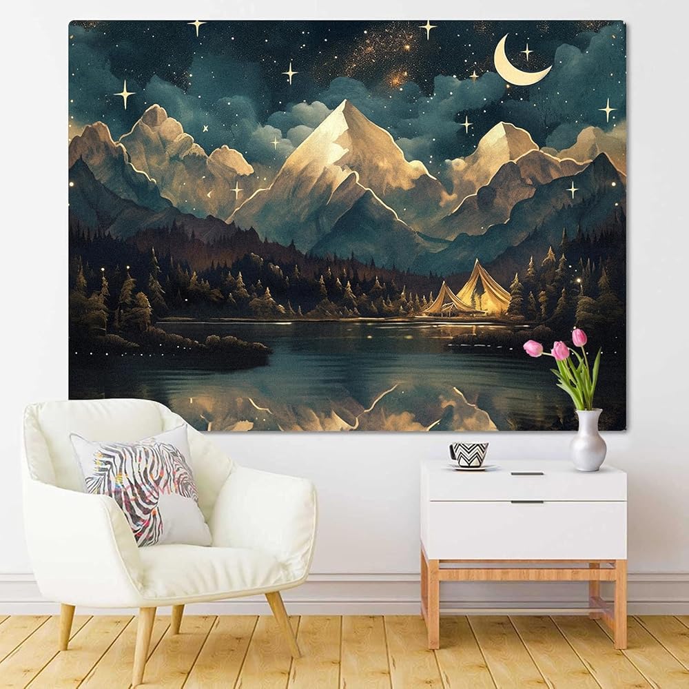Nesphy نسيج جمالي لغرفة النوم، طبيعة شجرة الجبل القمر والنجوم مشهد النهر نسيج الجدار ديكور المنزل الجدار شنقا لغرفة المعيشة غرفة النوم النوم 50x60 بوصة