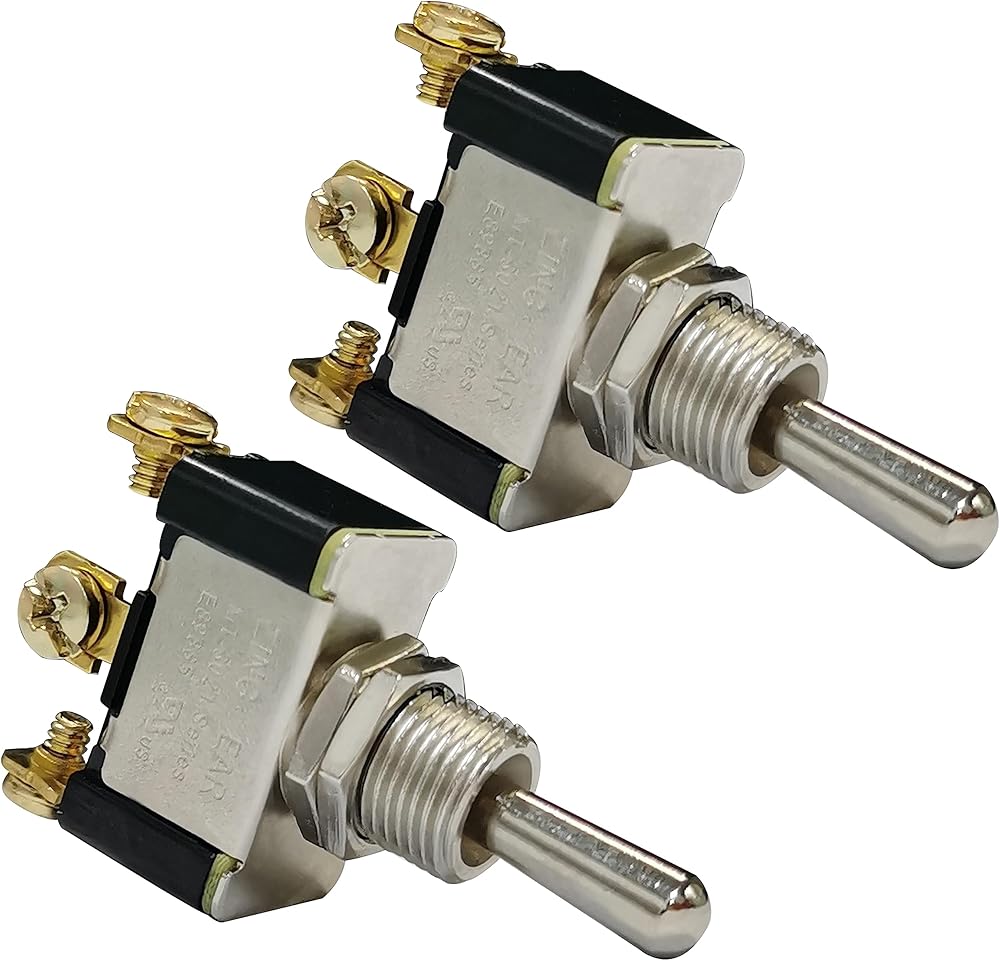 • [Widely Used] This 3 pin 1P2T and screws connection toggle switch is widely applied to air compressor, pool pump, sprayer pump, gas fireplace etc. Package listing: 2pcs Toggle Rocker Switch.