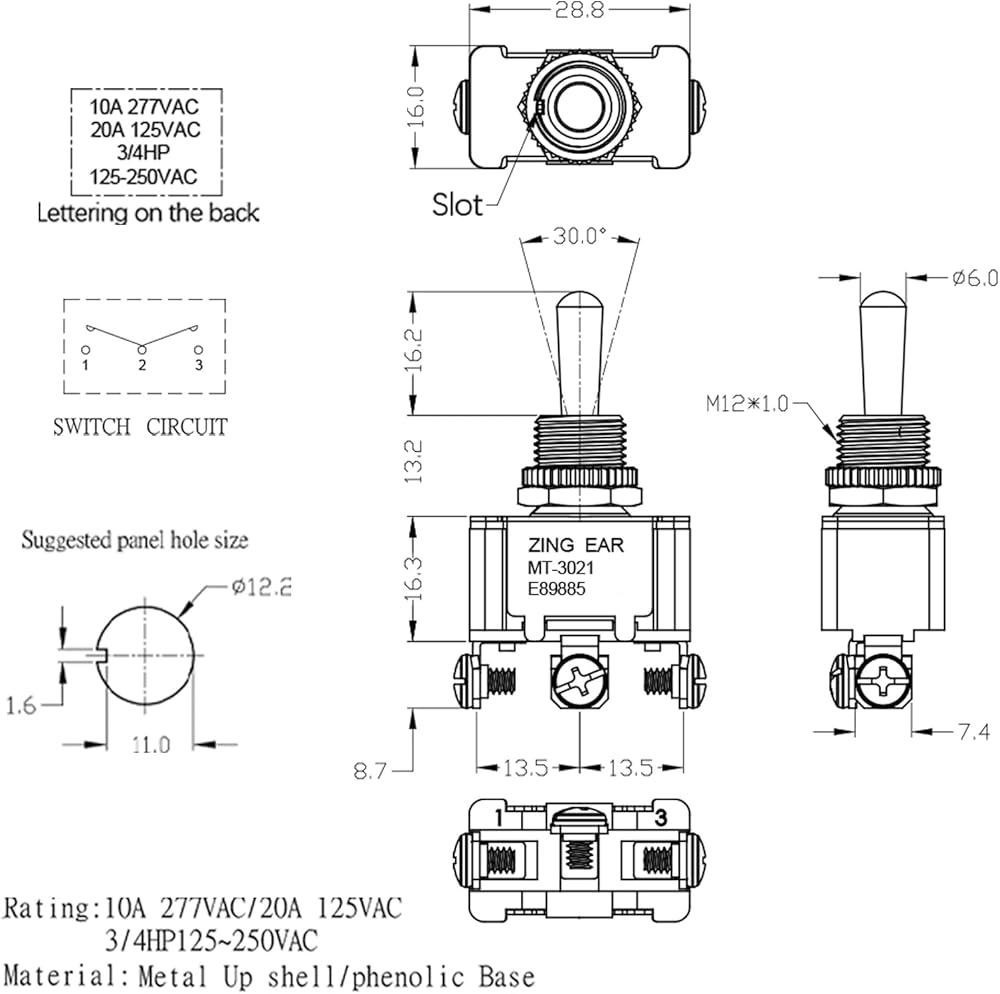 Toggle Switch Specification: